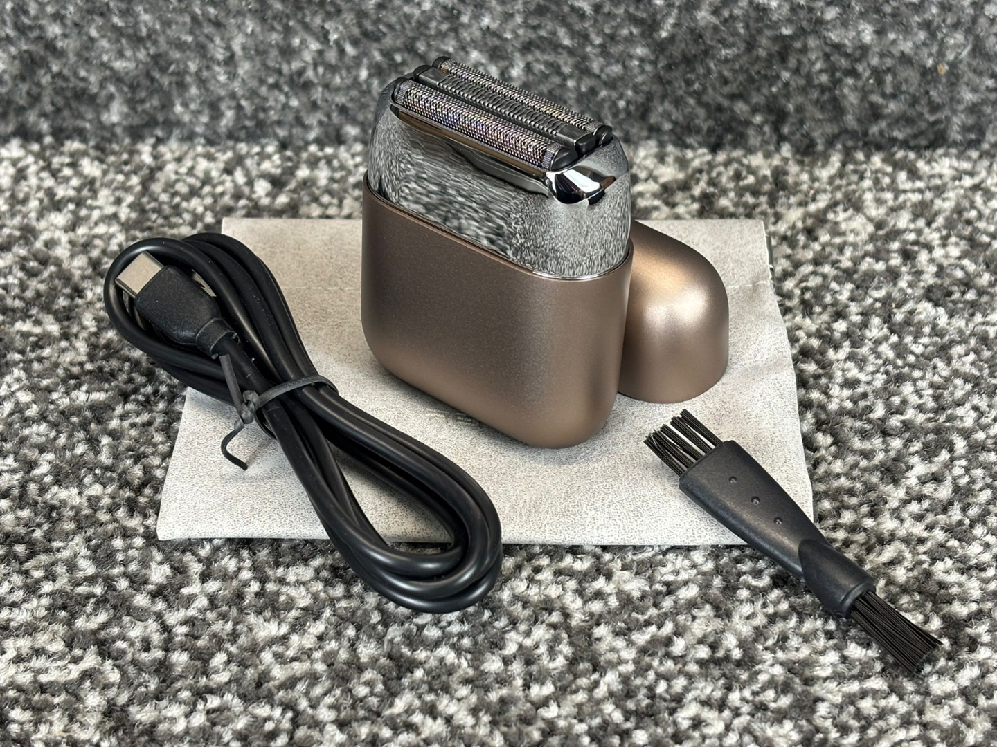 - > Champagne Gold All-Metal Mini Electric Shaver with High-Speed Motor & Washable Design