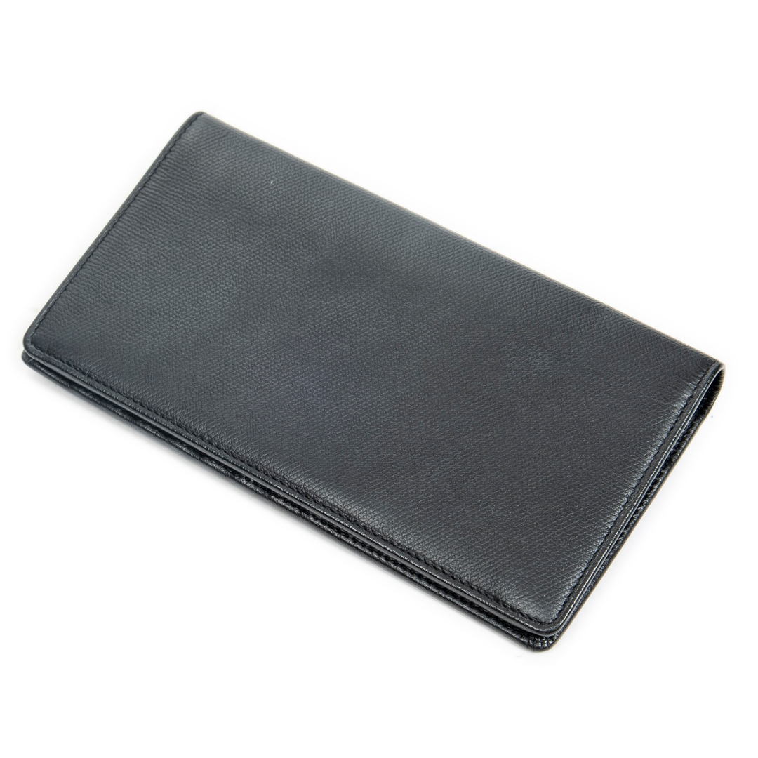 A vintage Chanel CC Button Long Flap Wallet showcases the brand’s iconic elegance and timeless craftsmanship. Expertly crafted from luxurious black calf leather, it features a beautifully smooth texture enhanced by Chanel’s signature gold-tone CC button emblem — a subtle yet unmistakable mark of Parisian sophistication.