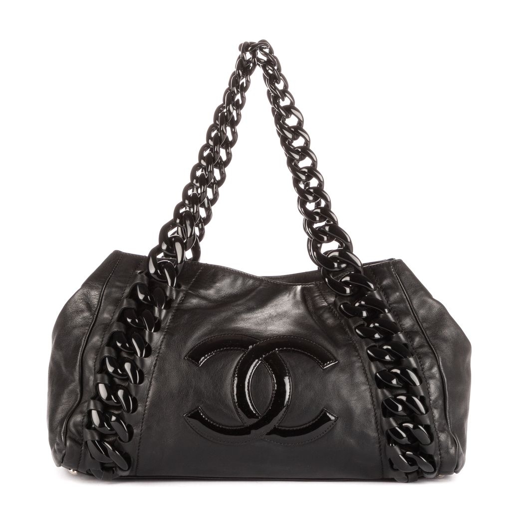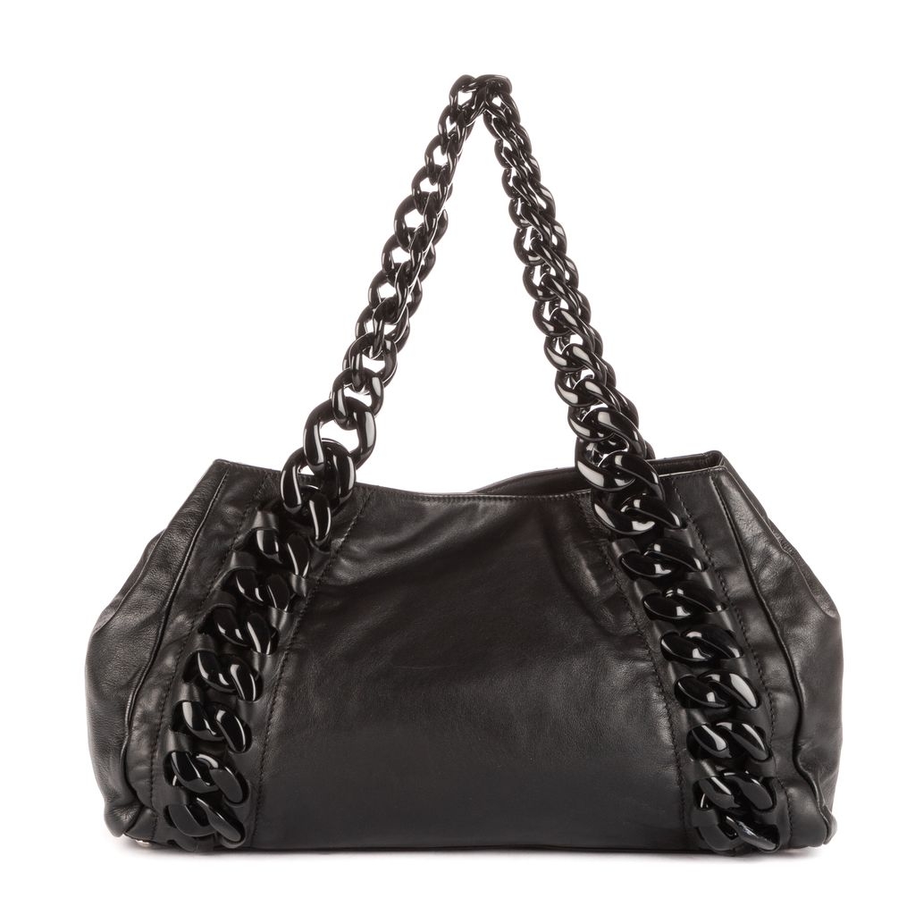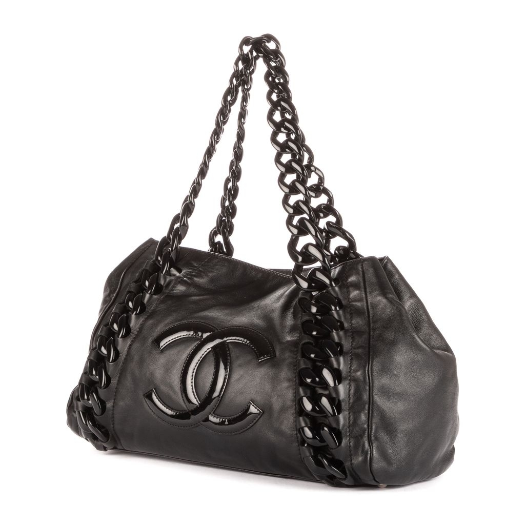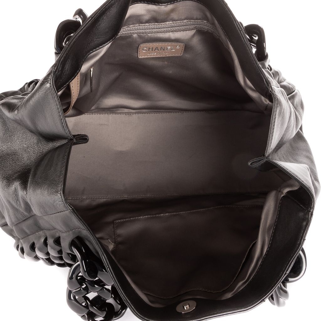 A vintage Chanel black calf leather Chain Shopping Tote bag with a certificate of authenticity, Approximately 24cm height, 38cm width.