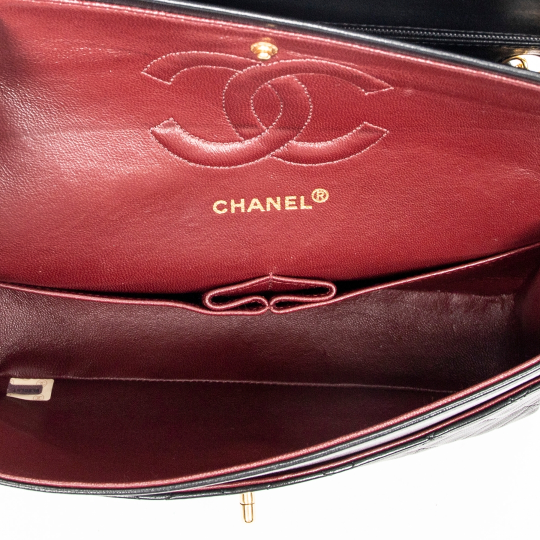 A vintage Chanel black quilted lambskin leather Classic Double Flap bag with a certificate of authenticity, Approximately 16cm height, 26cm width.