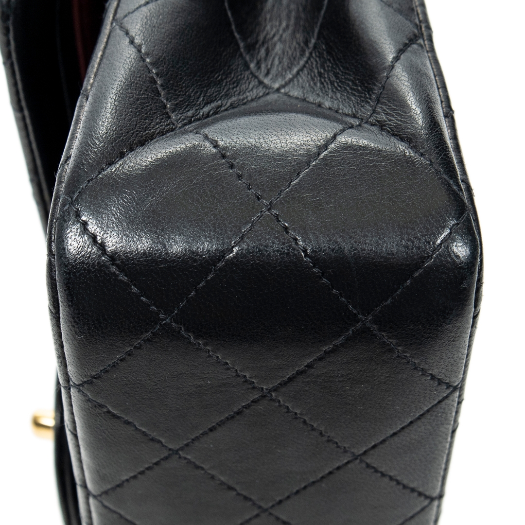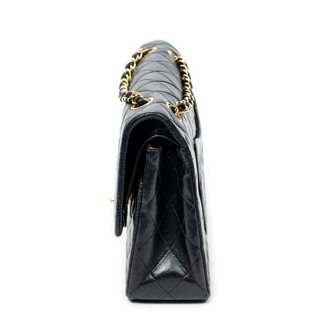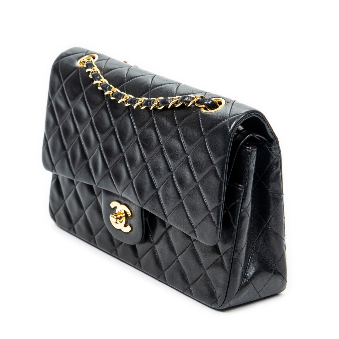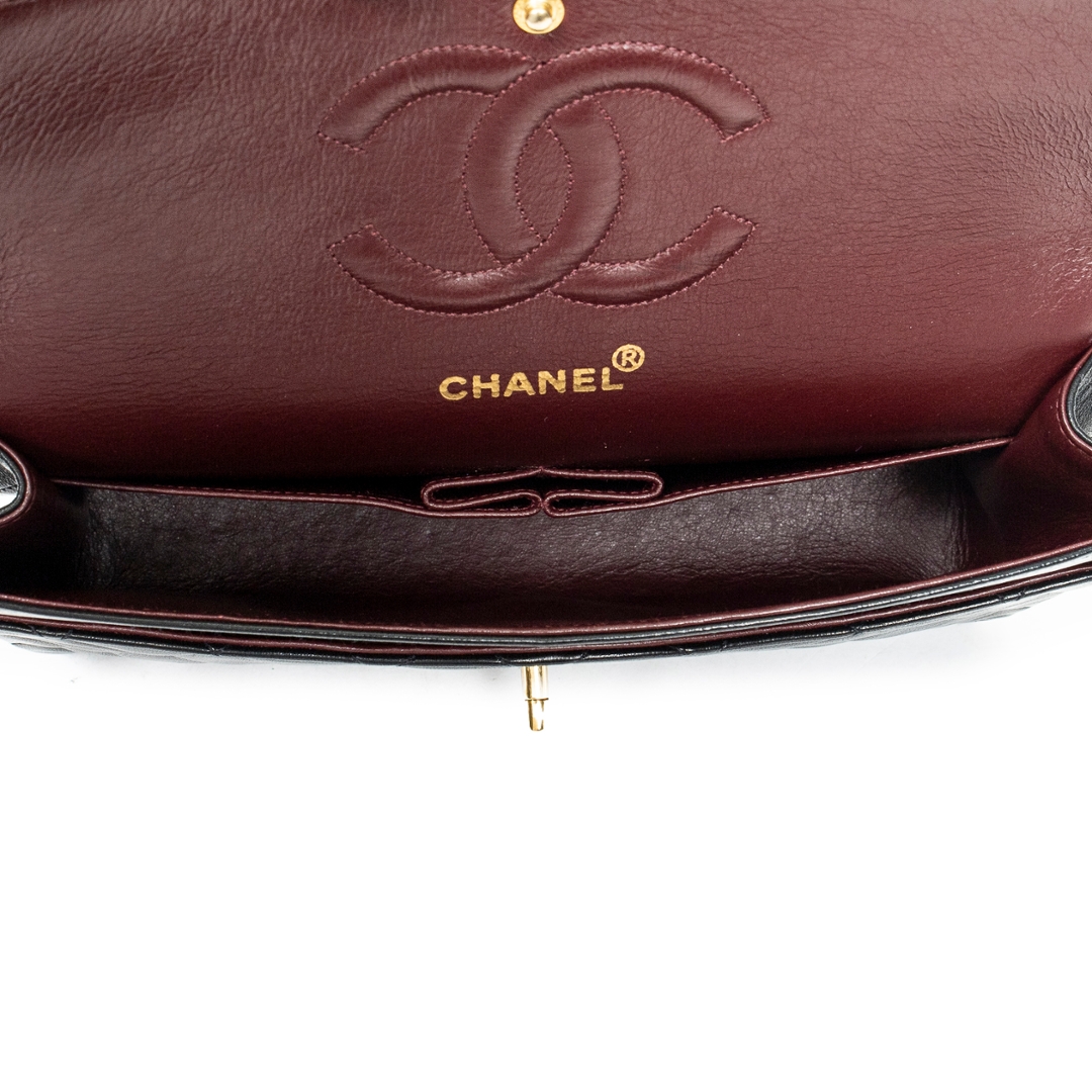 A vintage Chanel black quilted calfskin leather Classic Double Flap bag with a certificate of authenticity, Approximately 16cm height, 25cm width.