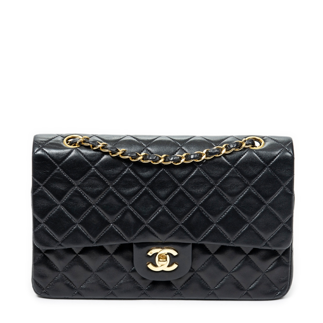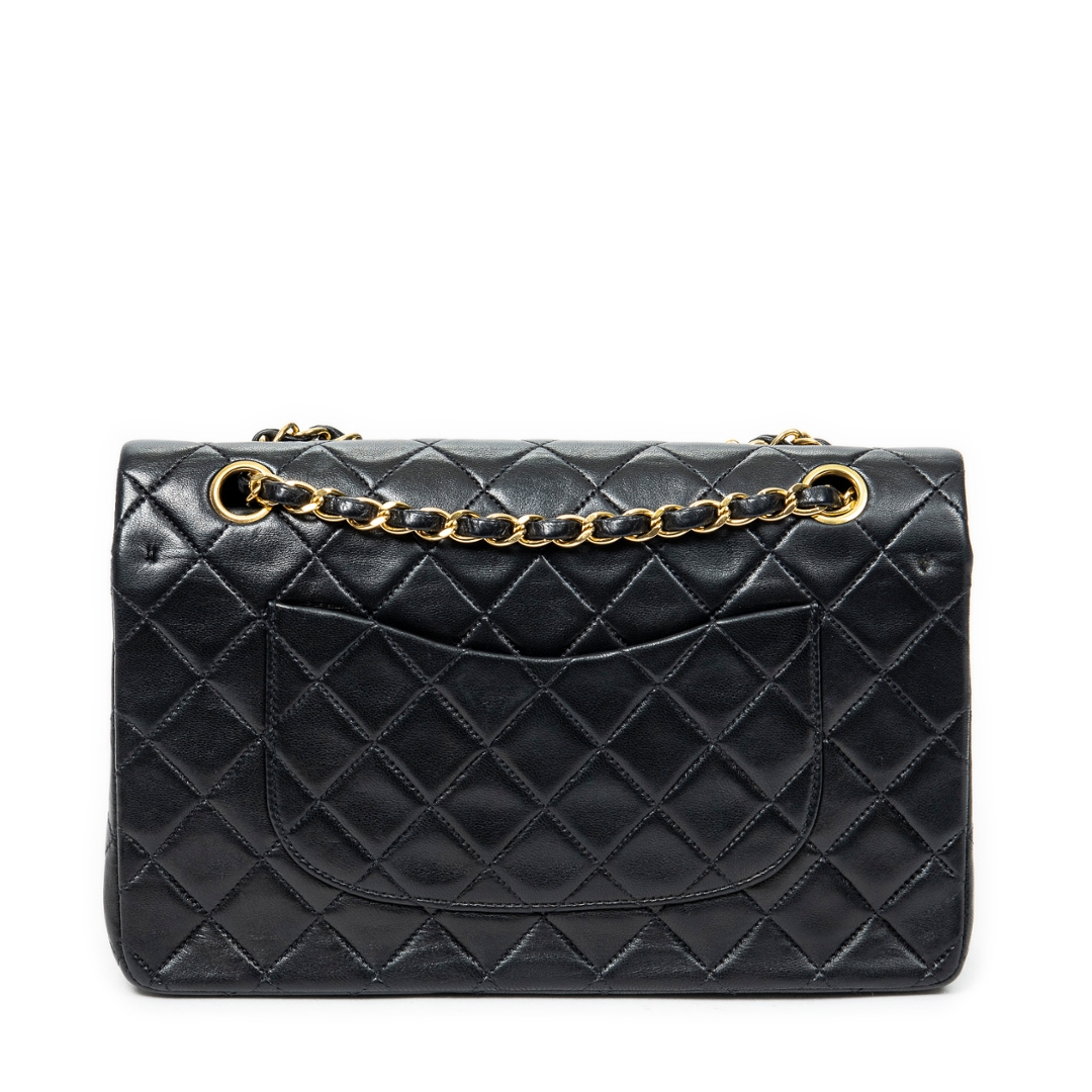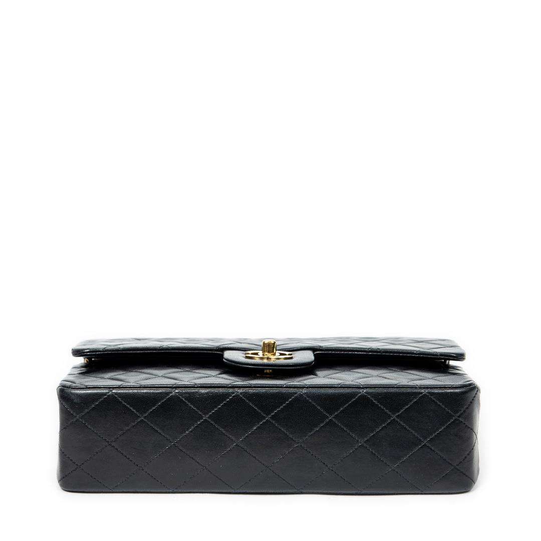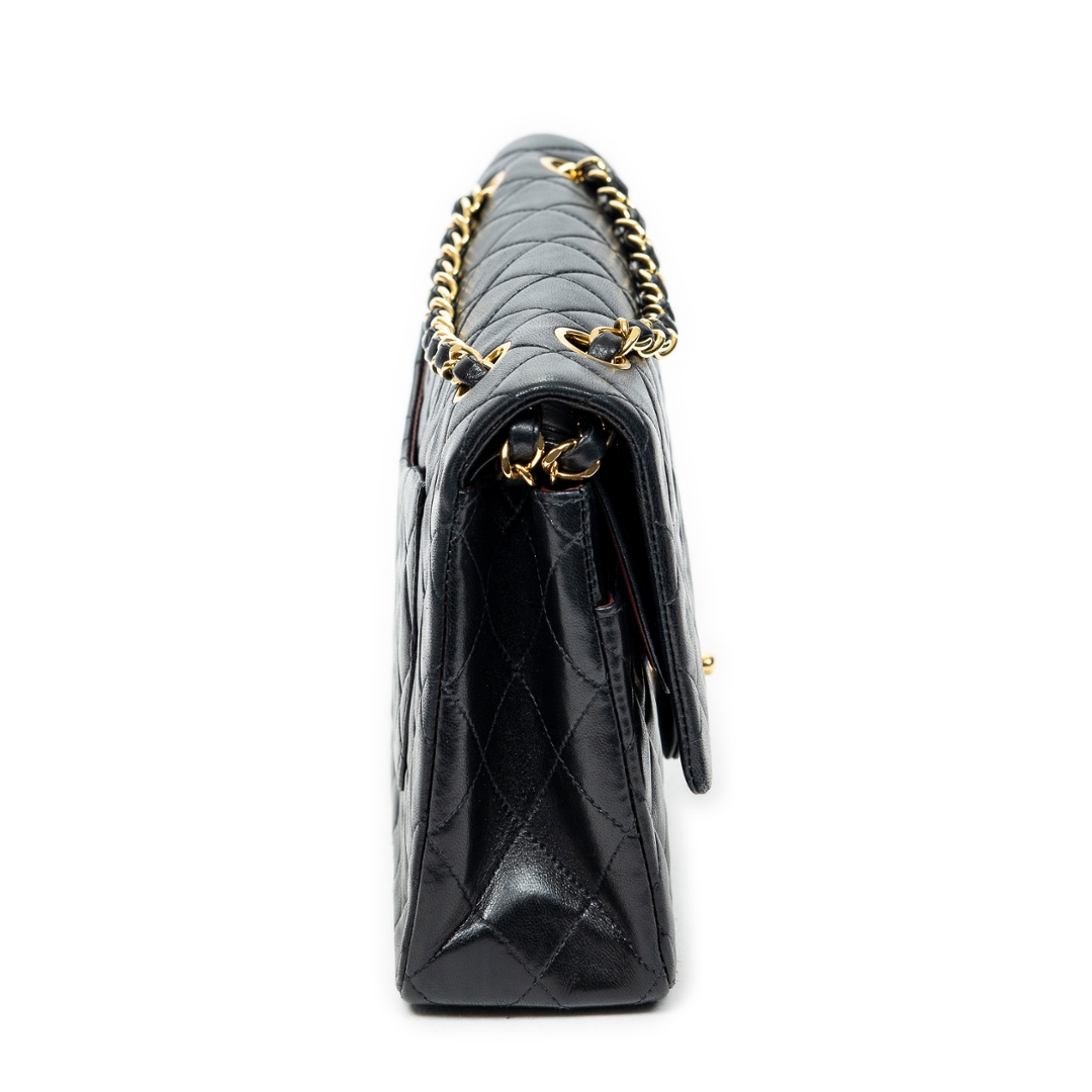 A vintage Chanel black quilted calfskin leather Classic Double Flap bag with a certificate of authenticity, Approximately 16cm height, 25cm width.