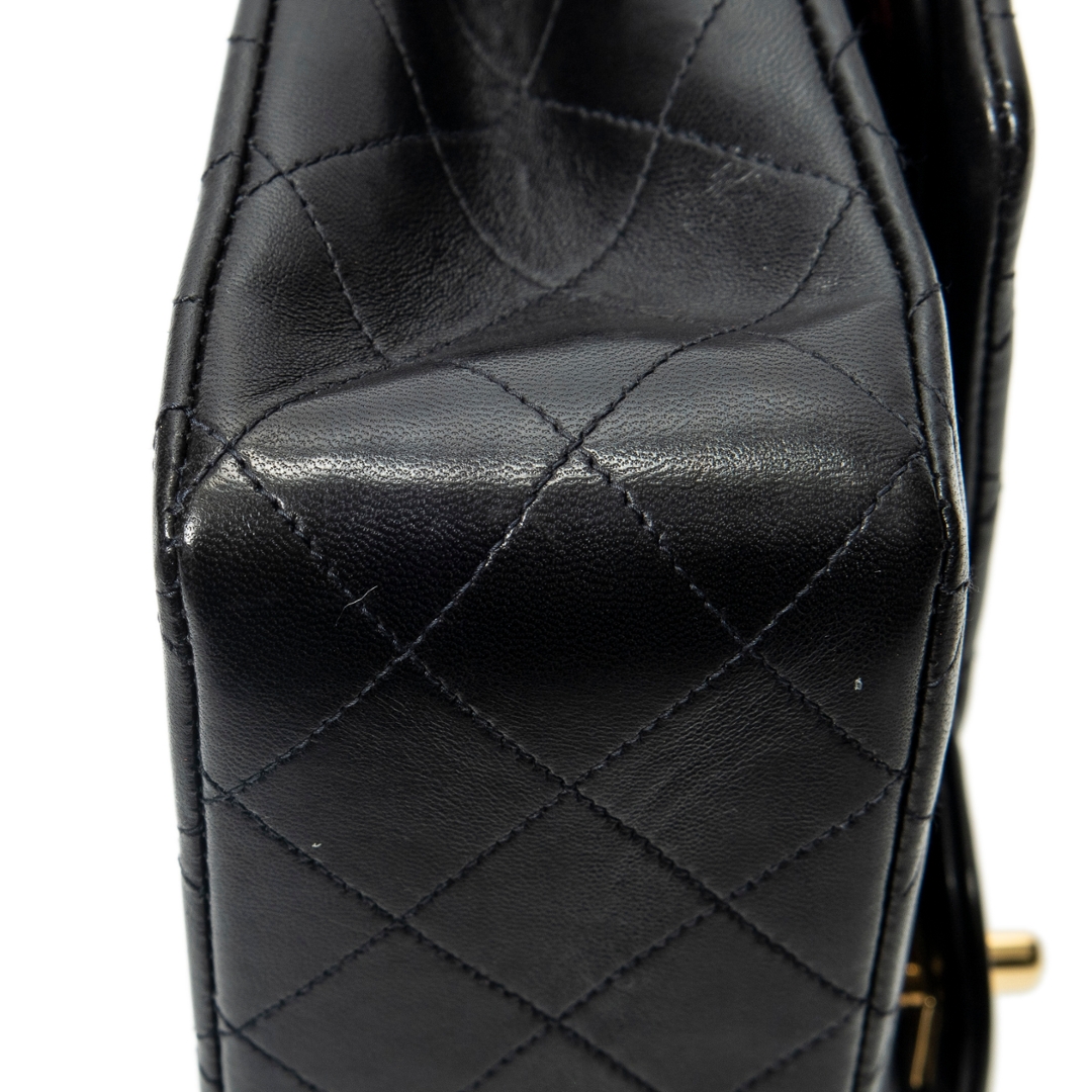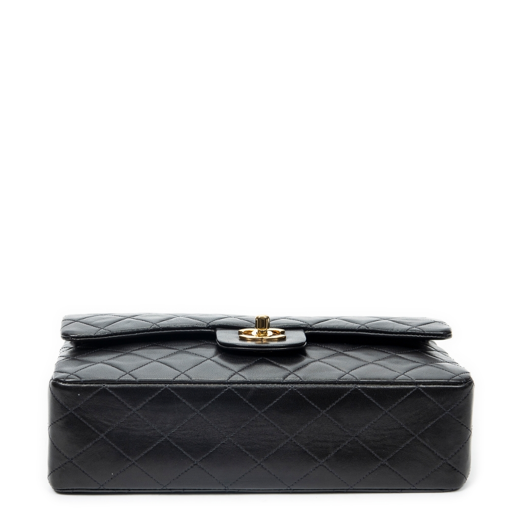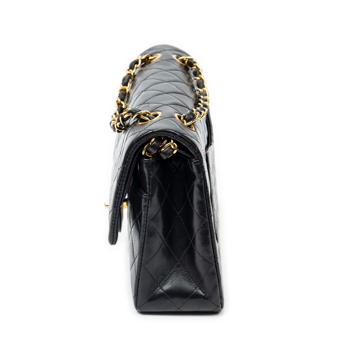 A vintage Chanel black quilted lambskin leather Classic Double Flap bag with a certificate of authenticity, Approximately 15cm height, 24cm width.