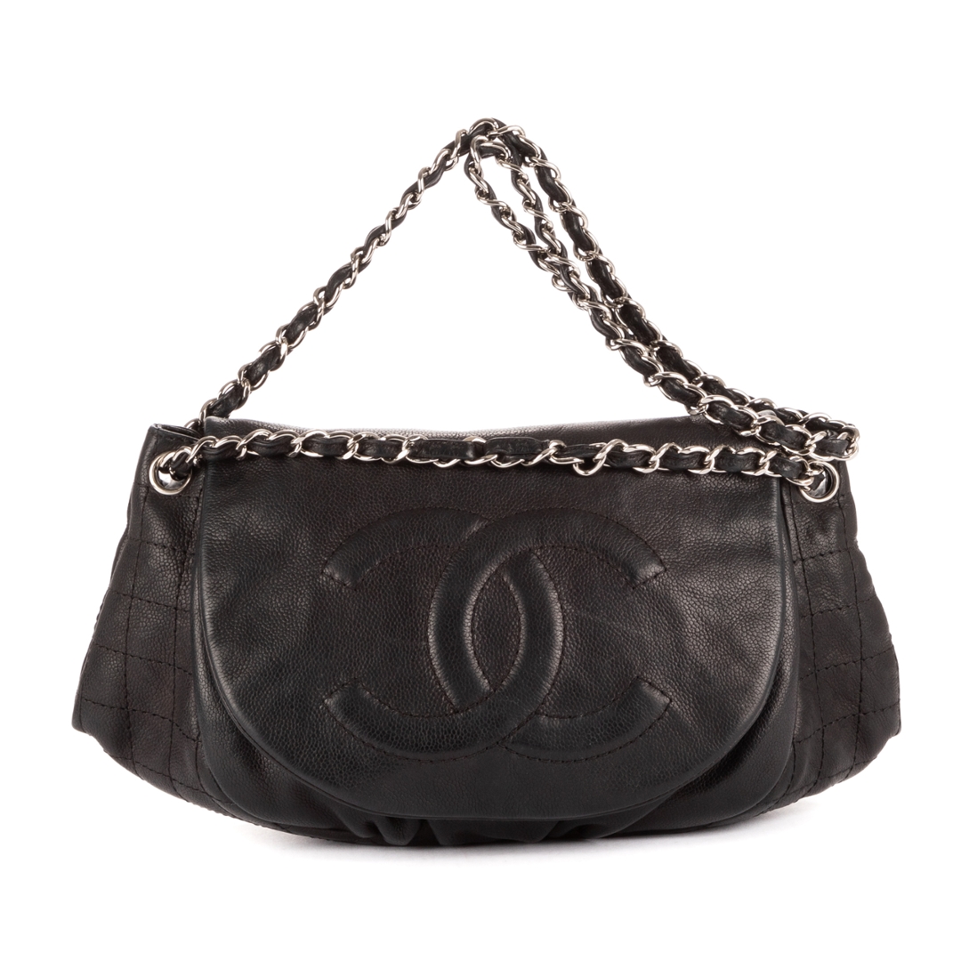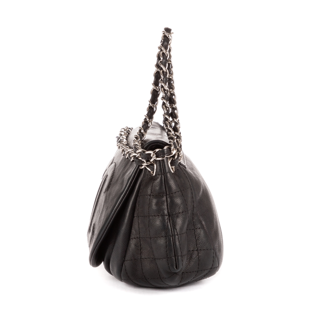 A vintage Chanel black calf leather Half Moon Tote bag with a certificate of authenticity, Approximately 18cm height, 25cm width.