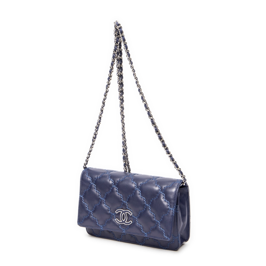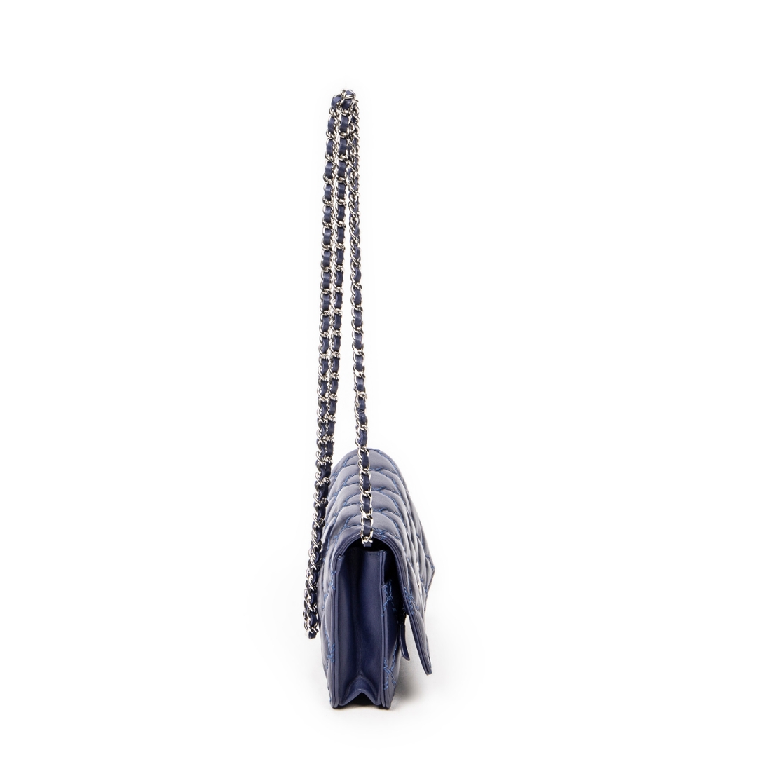 A vintage Chanel navy calf leather Hampton Wallet on Chain bag with a certificate of authenticity, Approximately 12cm height, 19cm width.