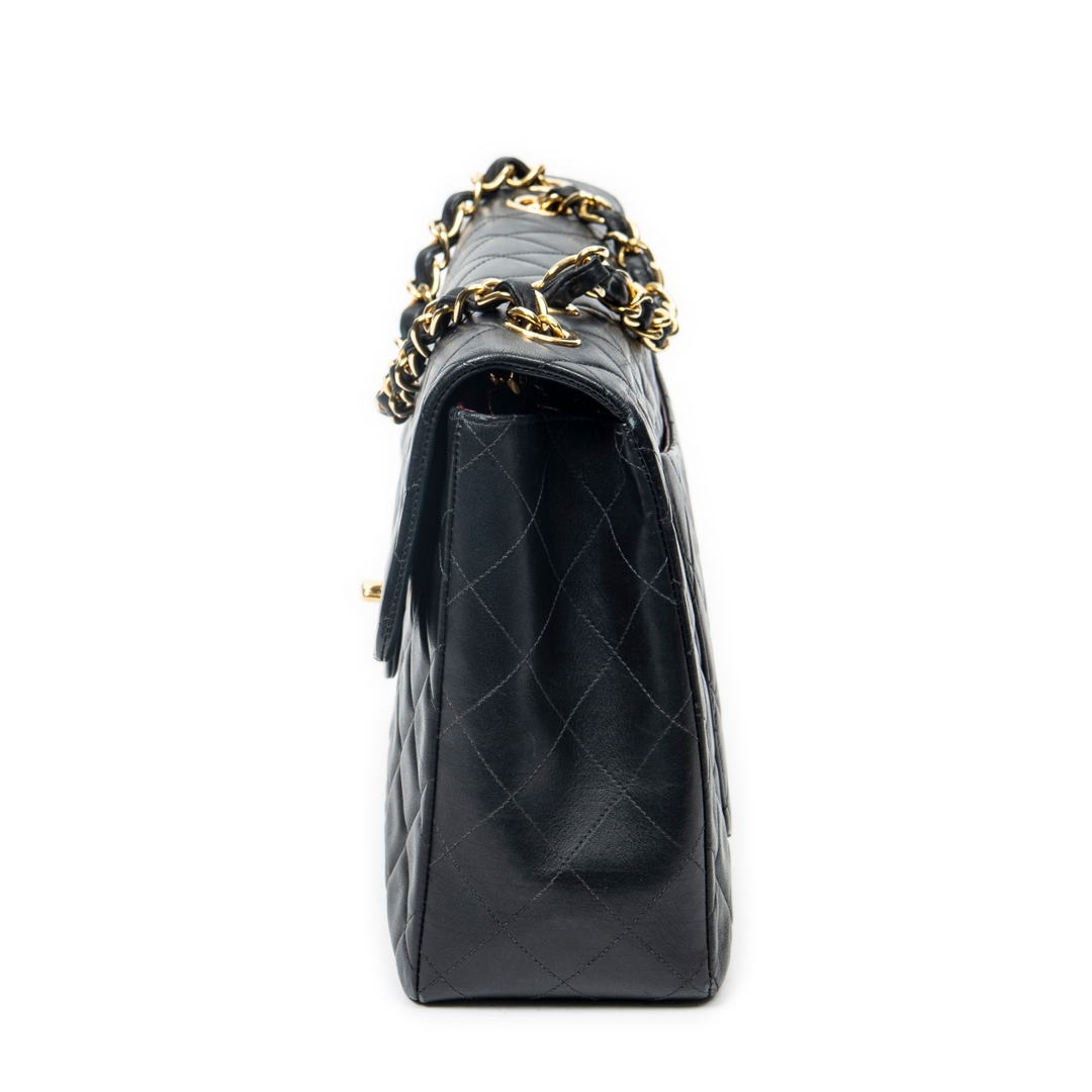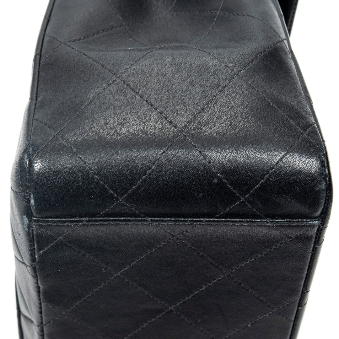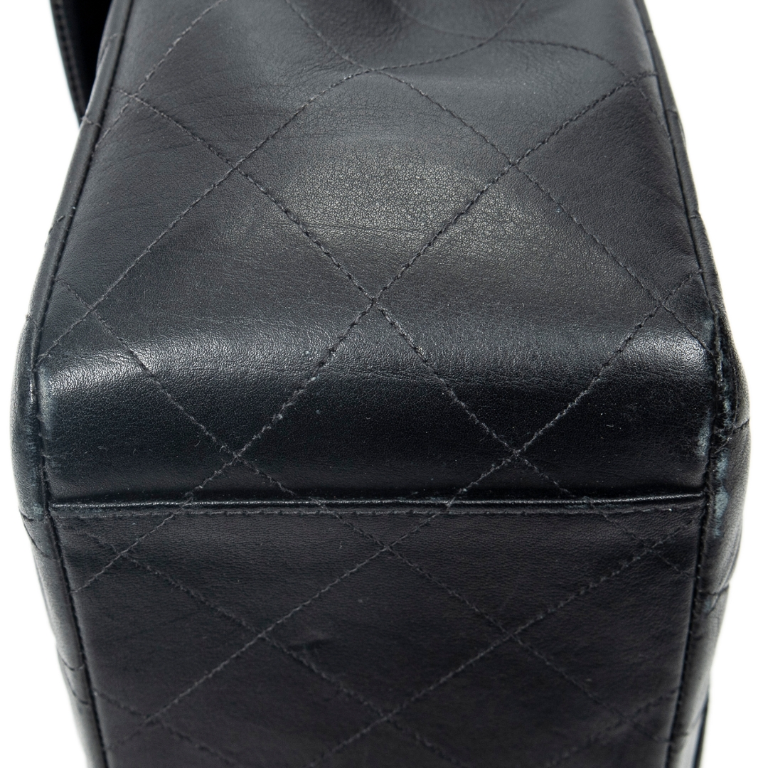A vintage Chanel black quilted lambskin leather Maxi Jumbo XL Flap bag with a certificate of authenticity, Approximately 23cm height, 34cm width.