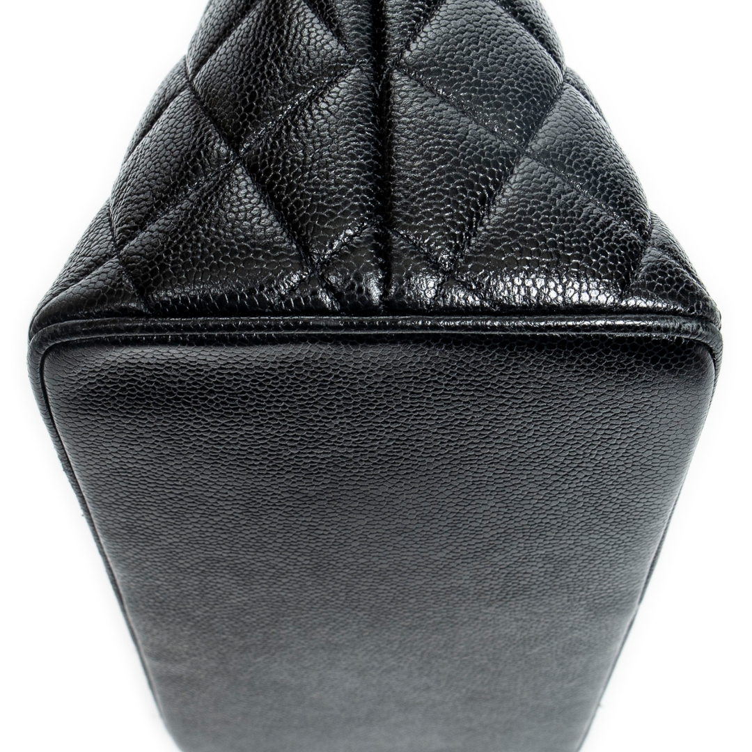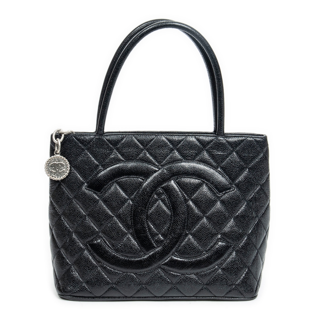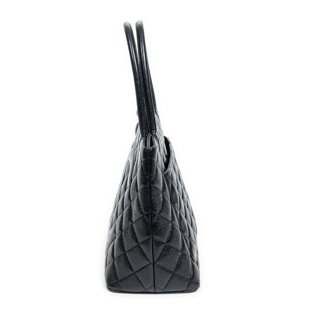 A vintage Chanel black calf leather Medallion Tote bag with a certificate of authenticity, Approximately 25cm height, 30cm width.