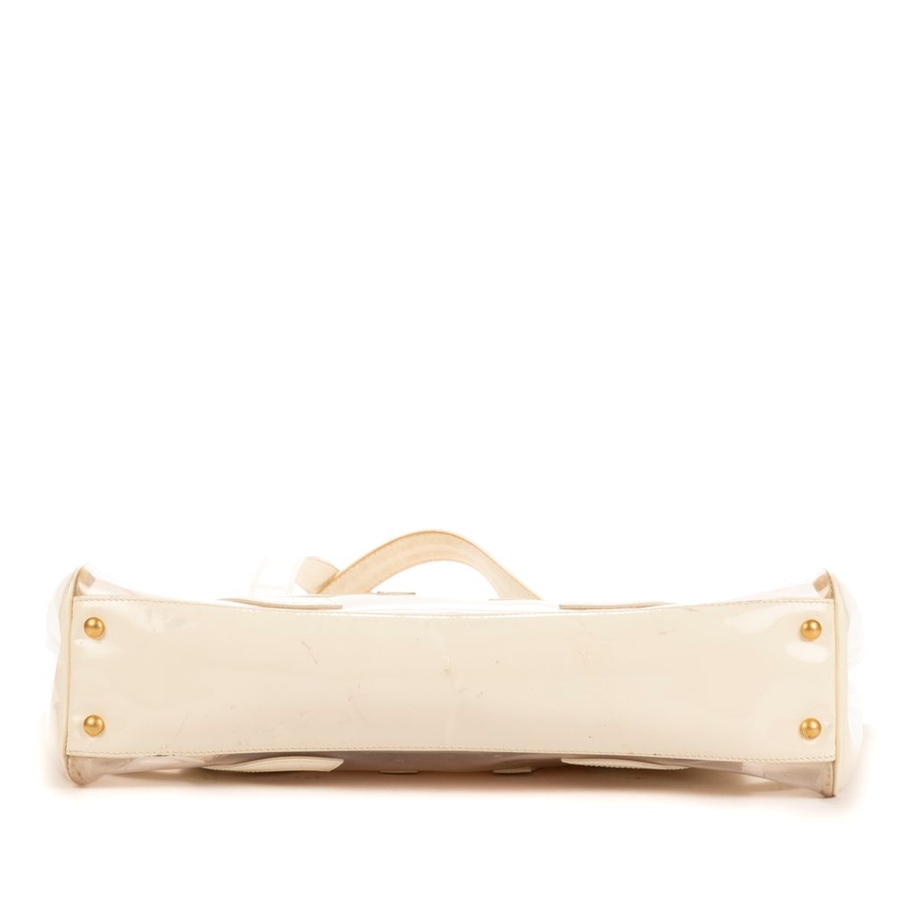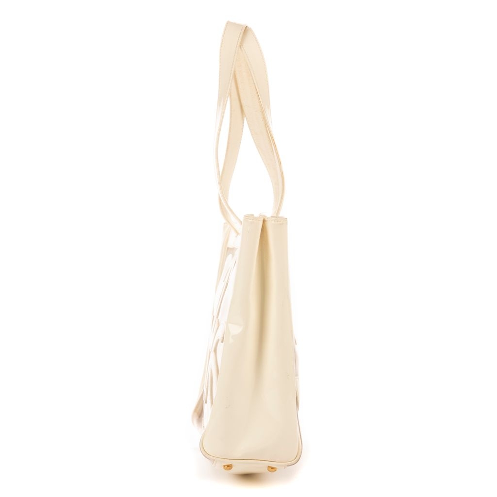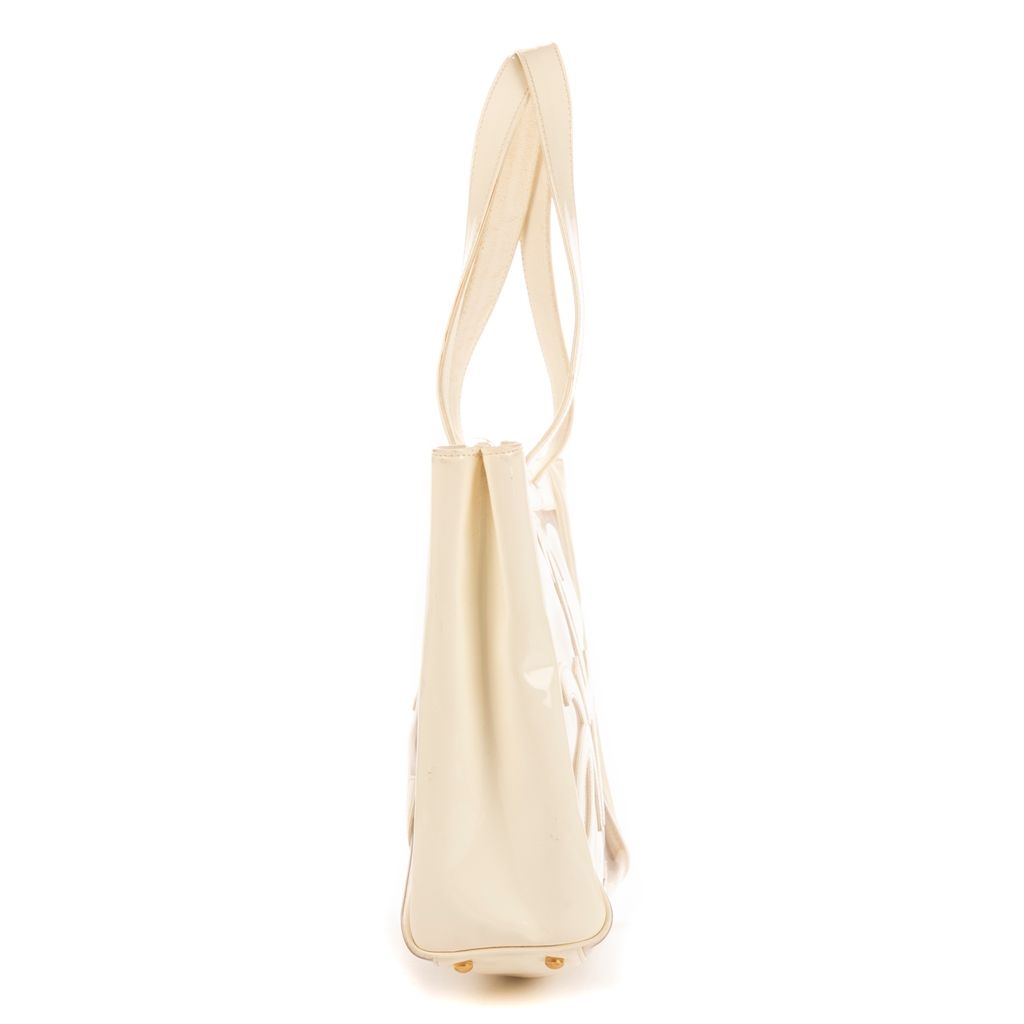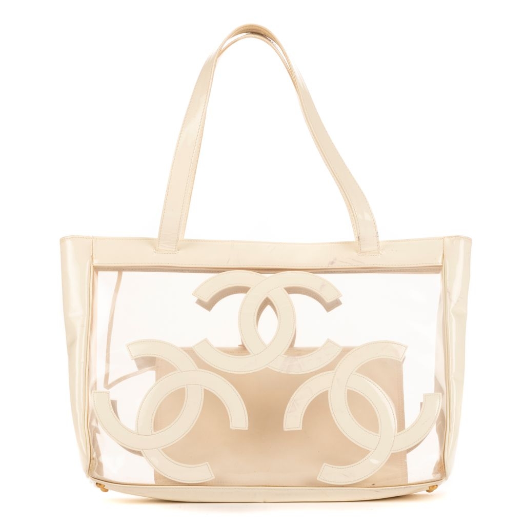 A vintage Chanel white vinyl canvas Triple Logo Tote bag with a certificate of authenticity, Approximately 26cm height, 37cm width.