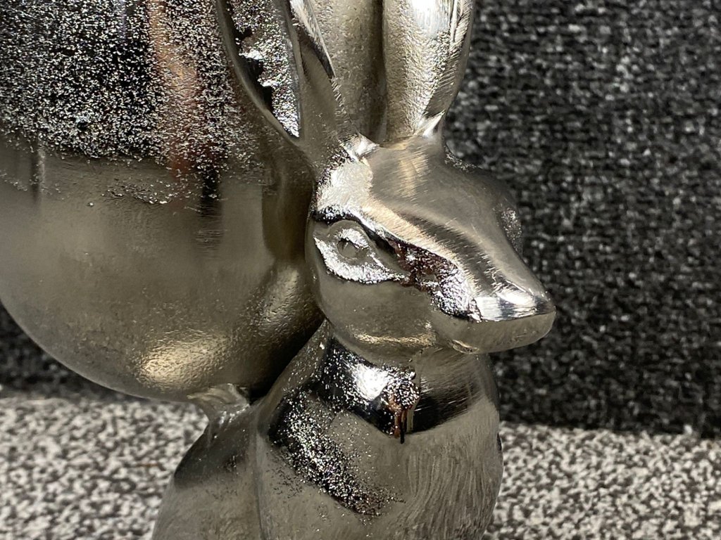 A Chrome Sculpture of a Hare & Leveret. Approximately 11" height, 8" width, 6" depth.