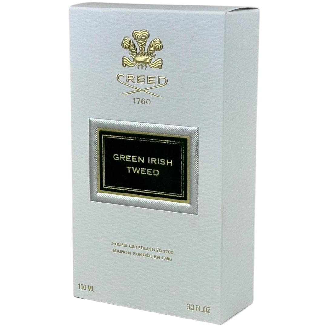 A 50ml bottle of Green Irish Tweed Eau De Parfum by Creed, presented in its official presentation box. This timeless fragrance is celebrated for its refined, fresh character, evoking the crisp elegance of the Irish countryside. Classic yet effortlessly modern, it delivers a clean and confident presence from the very first spray.