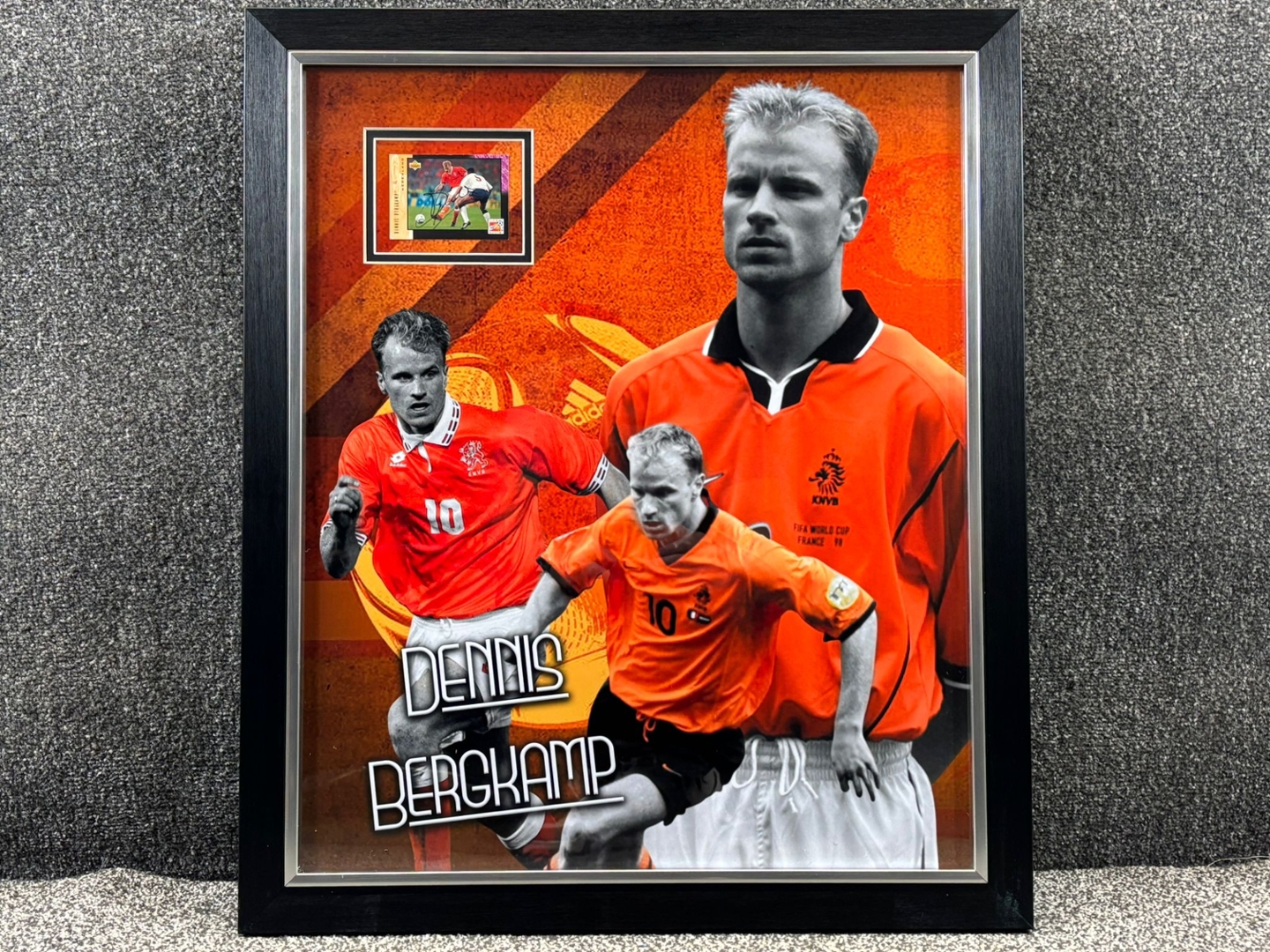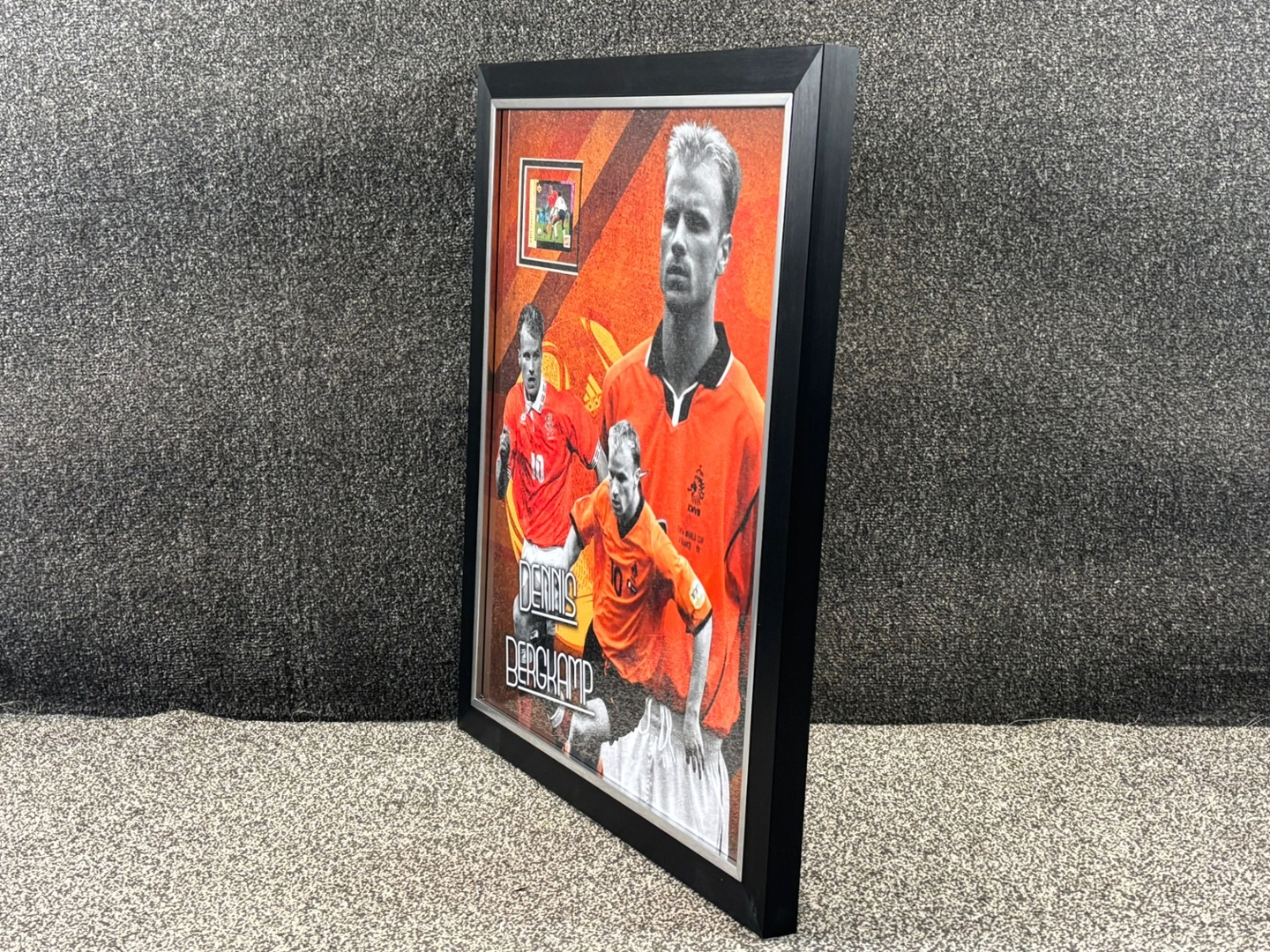 Perfect for football enthusiasts and collectors, this display is more than just memorabilia—it is a celebration of Dennis Bergkamp’s legacy, a timeless reminder of his artistry on the world stage.
