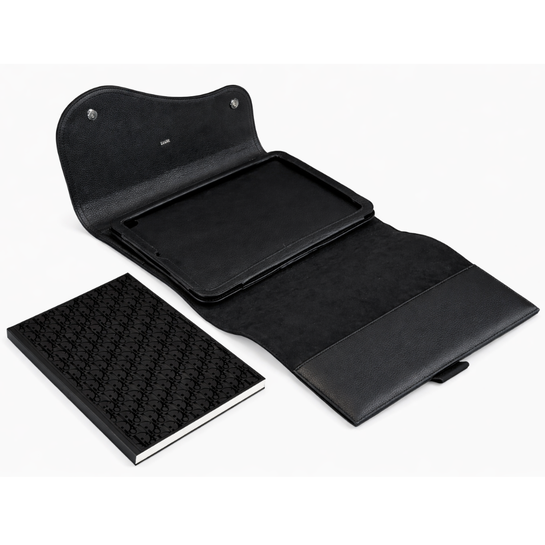 A brand new Dior A5 Jacquard Diary Case crafted in black Dior Oblique jacquard, showcasing the house’s iconic monogram in a subtle yet instantly recognisable finish. The structured silhouette is complemented by a softly curved flap closure, delivering a refined and contemporary aesthetic suited to both professional and everyday use. The tonal design is enhanced by discreet Dior branding, maintaining a clean and elevated appearance.