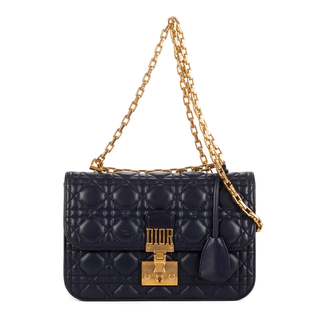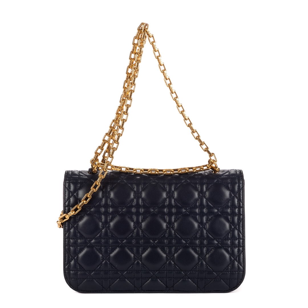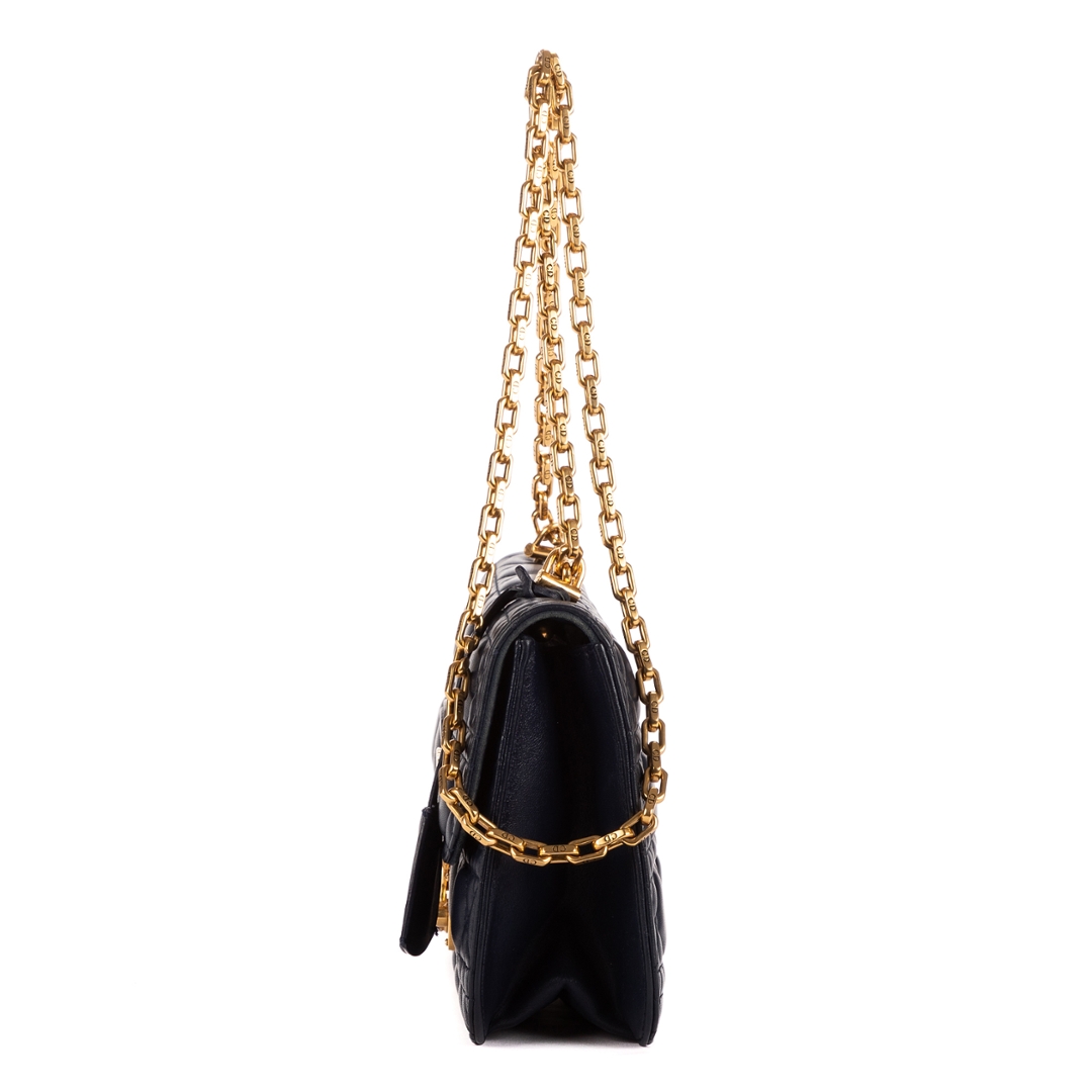 A vintage Dior navy calf leather Addict Wallet on Chain bag with a certificate of authenticity, Approximately 15cm height, 23cm width.