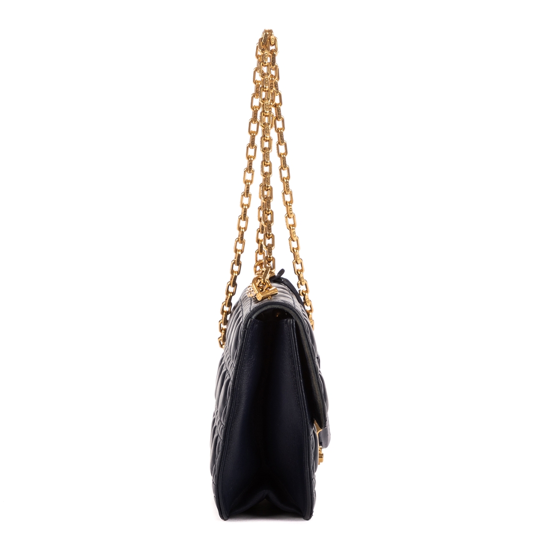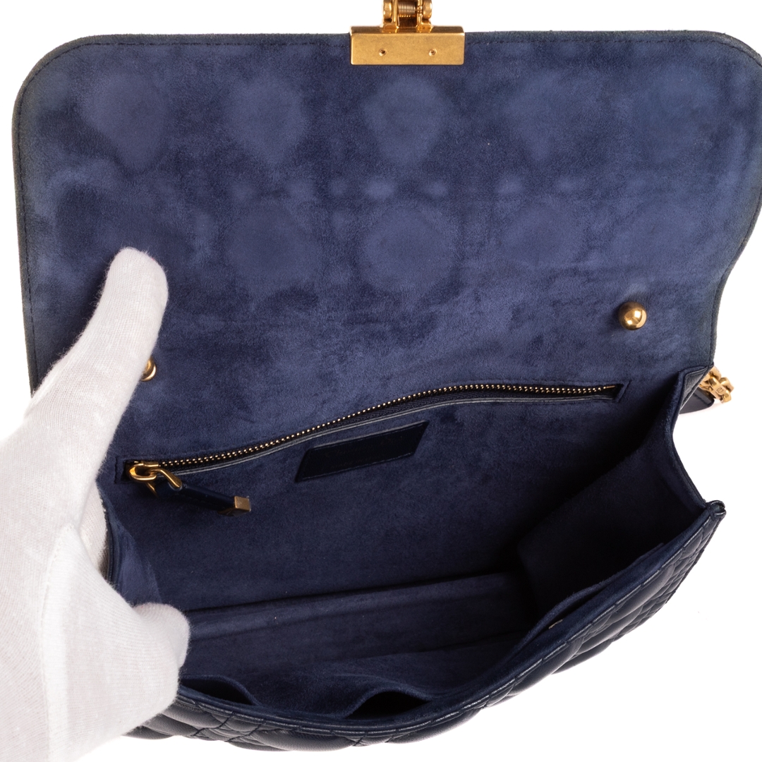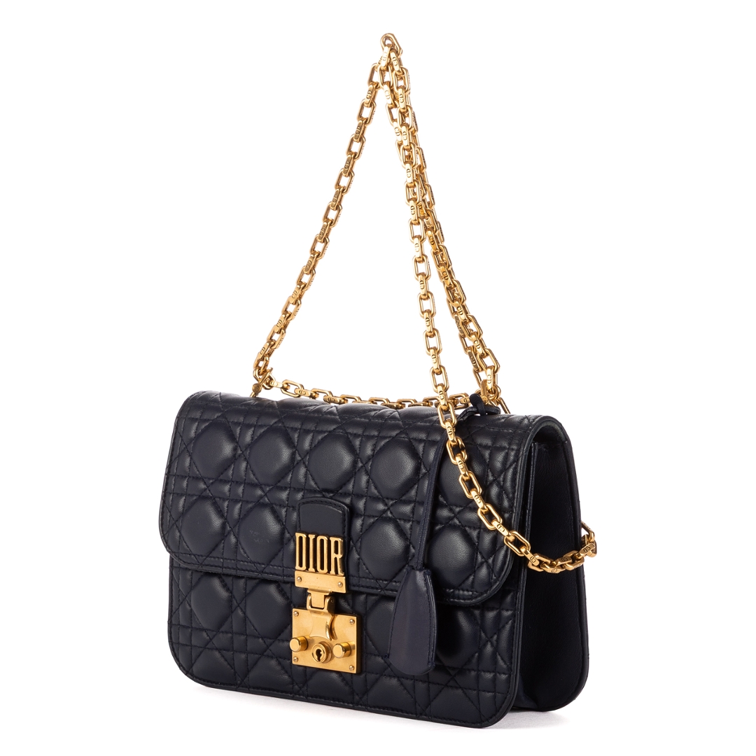A vintage Dior navy calf leather Addict Wallet on Chain bag with a certificate of authenticity, Approximately 15cm height, 23cm width.