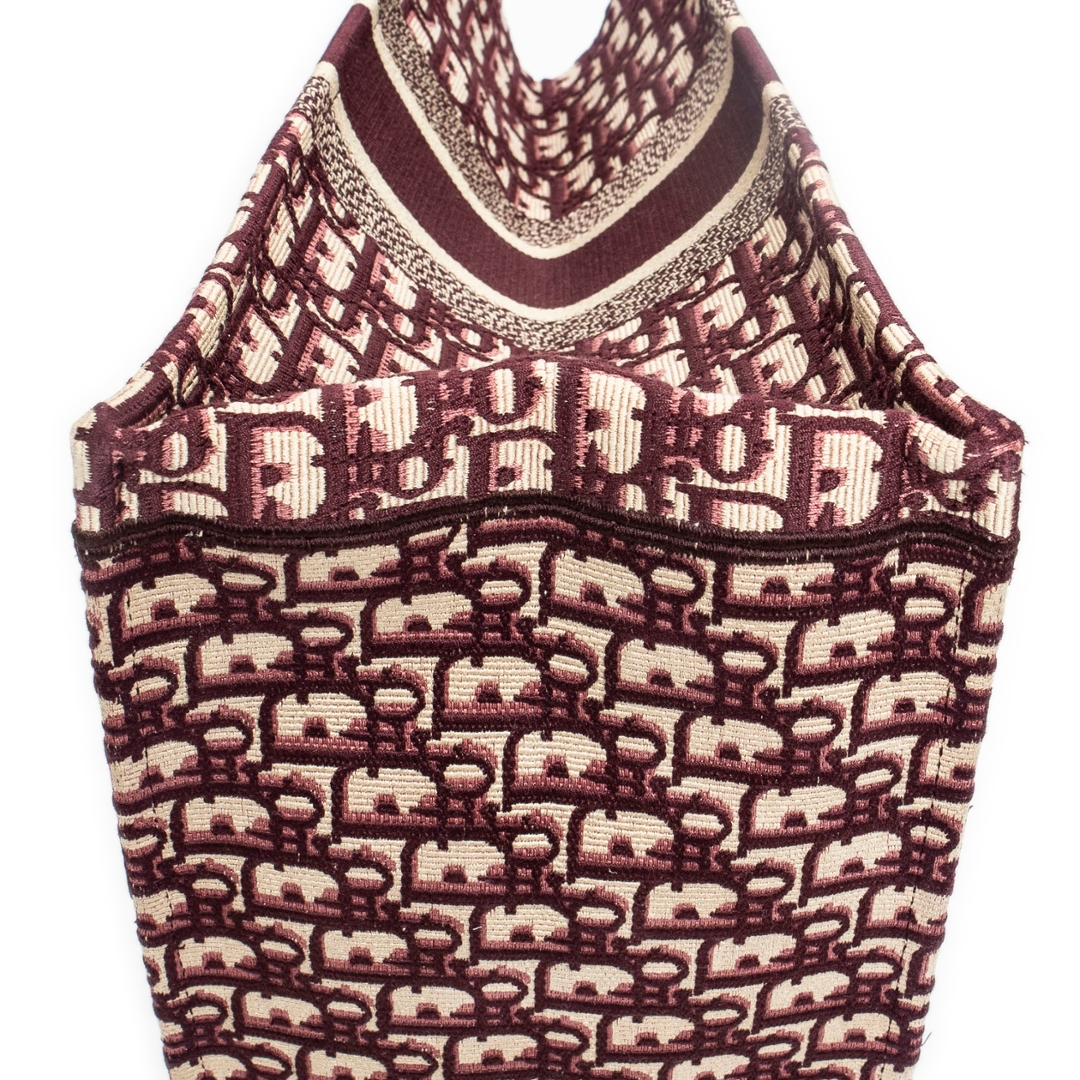 A vintage burgundy and beige canvas Dior Book Tote bag, an iconic design that has become a symbol of the Dior maison’s modern elegance. Crafted from richly woven canvas, this exquisite tote features the instantly recognisable Dior Oblique motif in deep burgundy tones, contrasted beautifully with beige accents. The bold ‘CHRISTIAN DIOR’ signature across the front adds a statement finish, celebrating the house’s heritage of refined craftsmanship and Parisian sophistication.