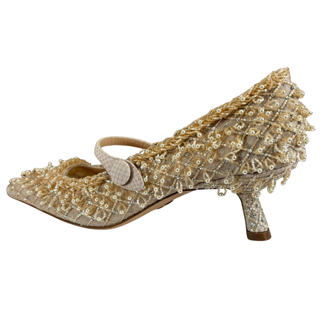 Dior Haute Couture Nude Embellished Mesh Pumps with Pearl & Beaded Detailing.