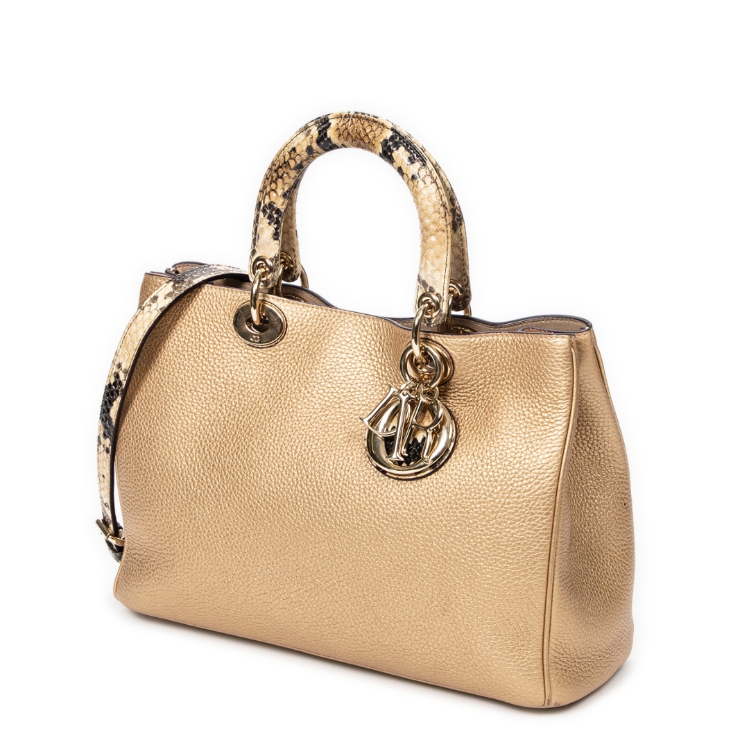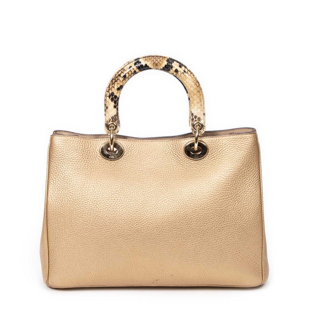 A vintage Dior gold calf leather Medium Diorissimo Tote bag with a certificate of authenticity, Approximately 22cm height, 32cm width.