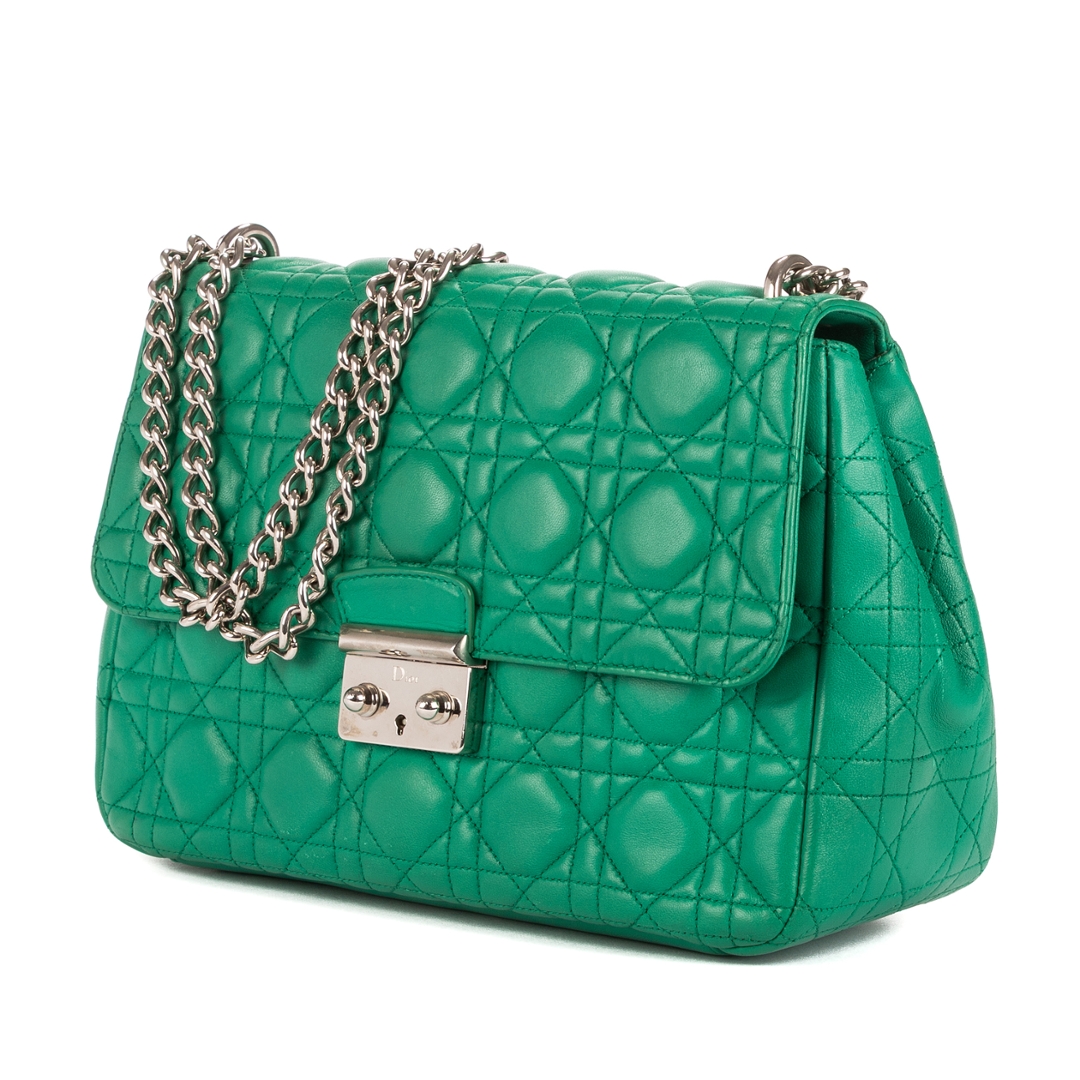 A vintage Dior green calf leather Miss Dior bag with a certificate of authenticity, Approximately 17cm height, 26cm width.