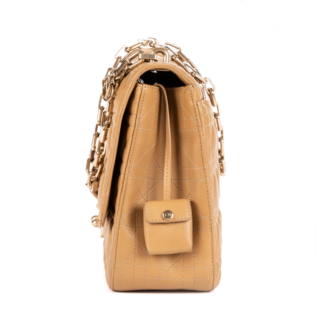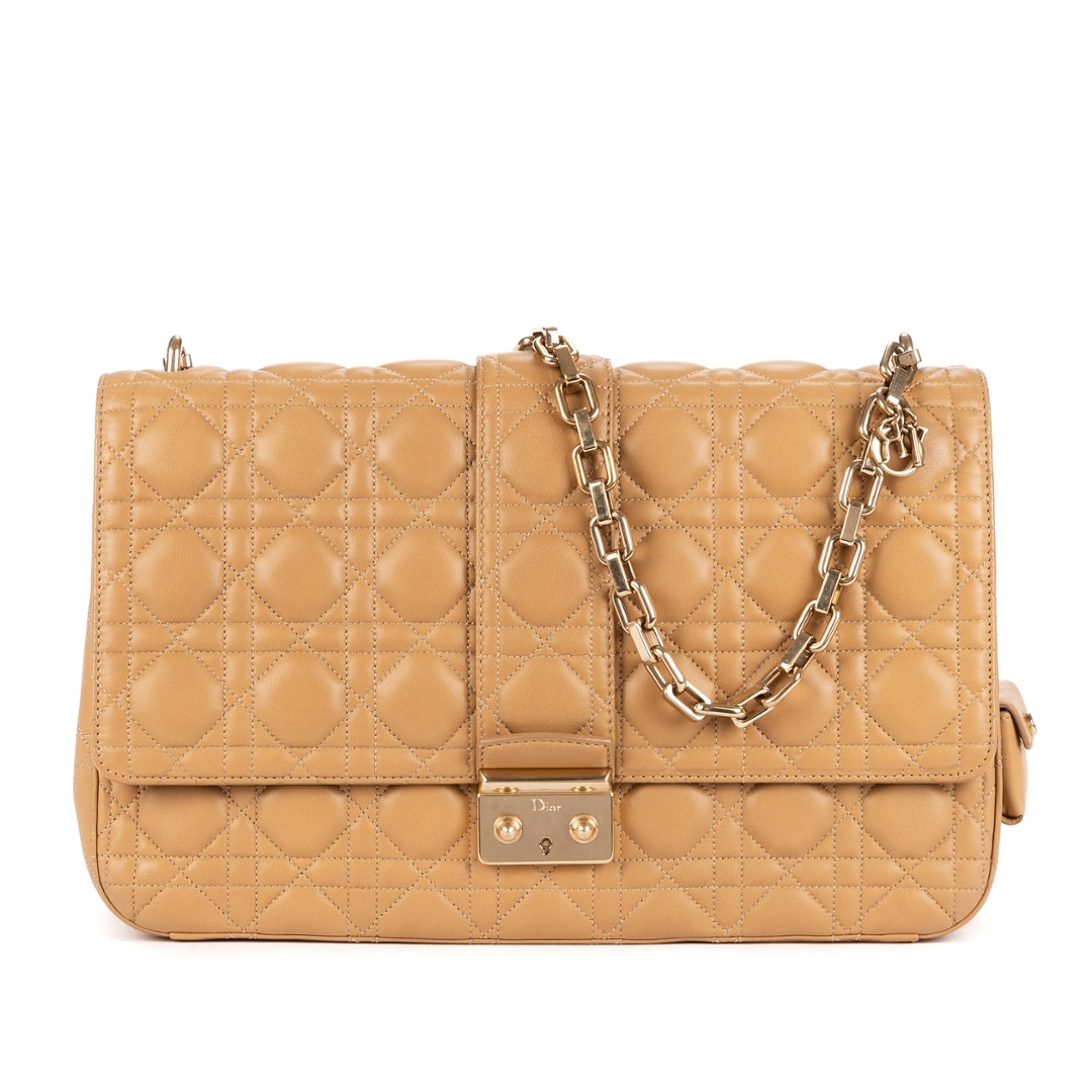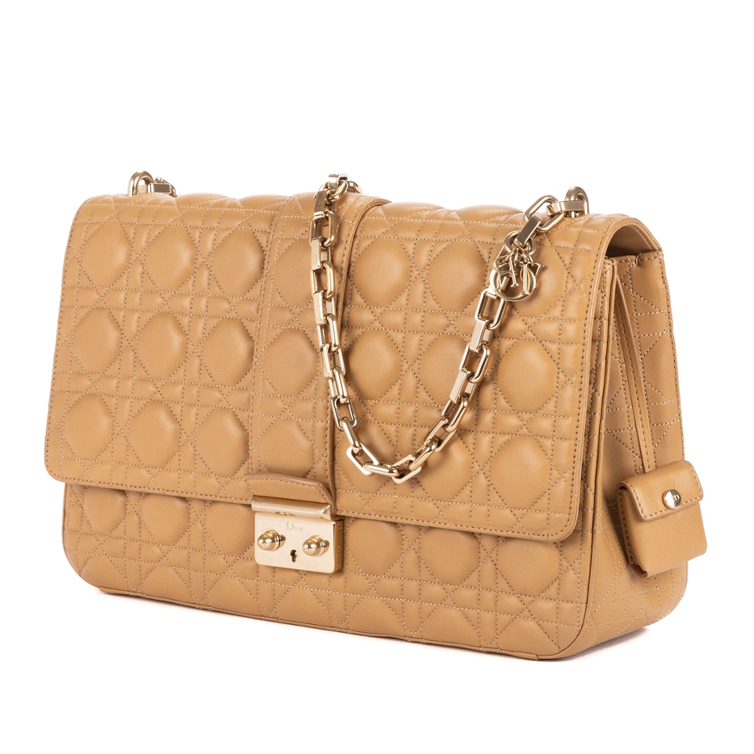 A vintage Dior beige calf leather Miss Dior bag with a certificate of authenticity, Approximately 19cm height, 31cm width.