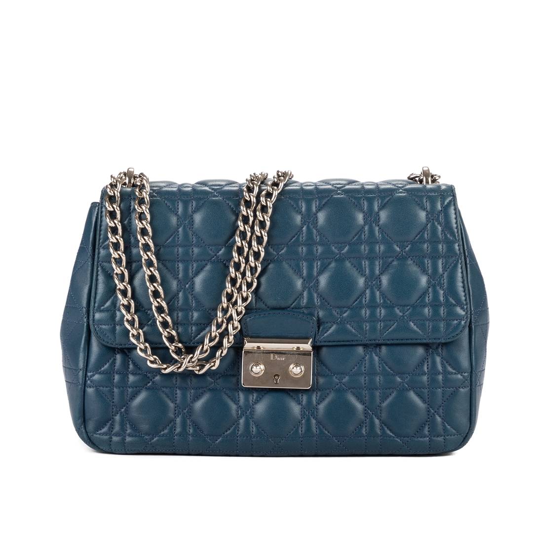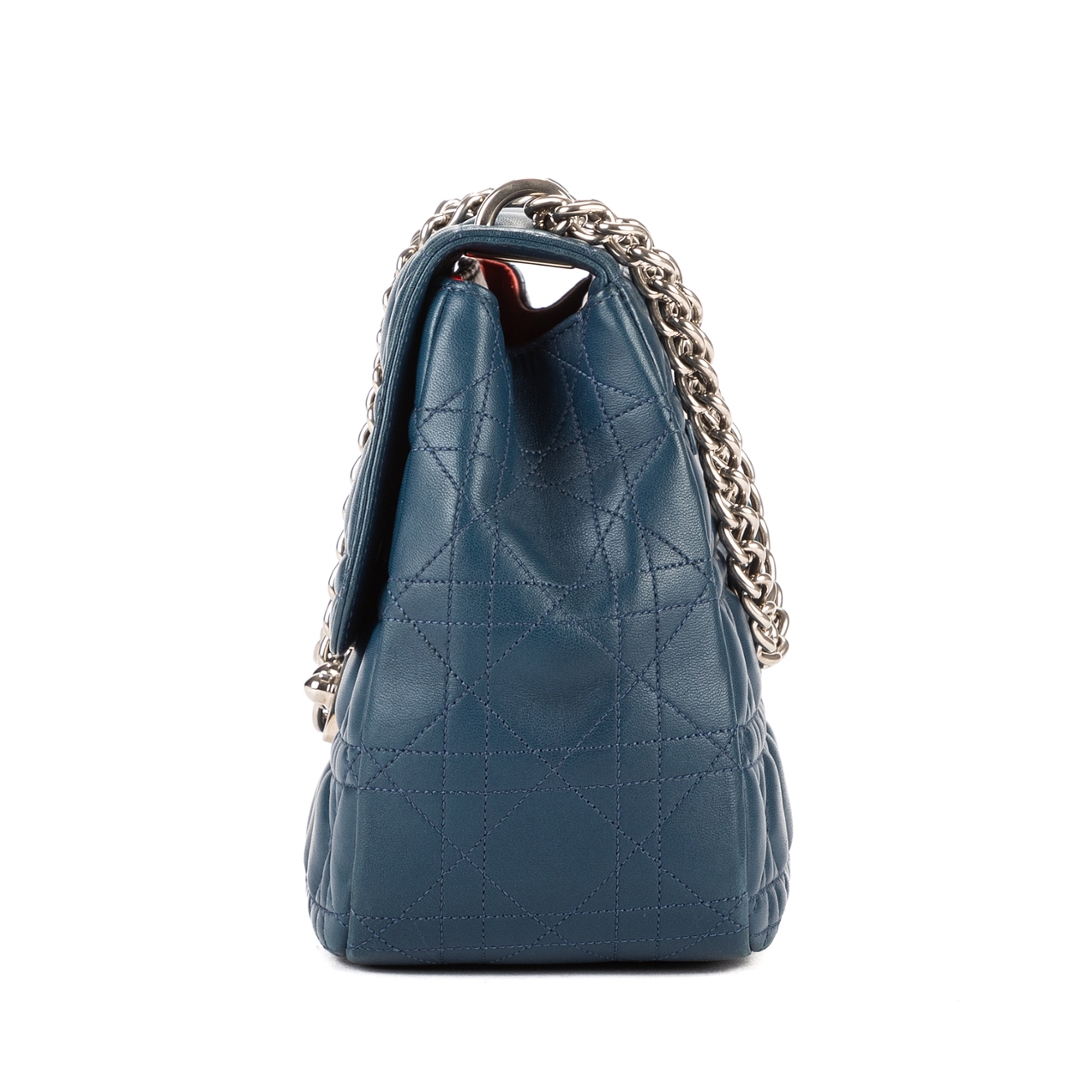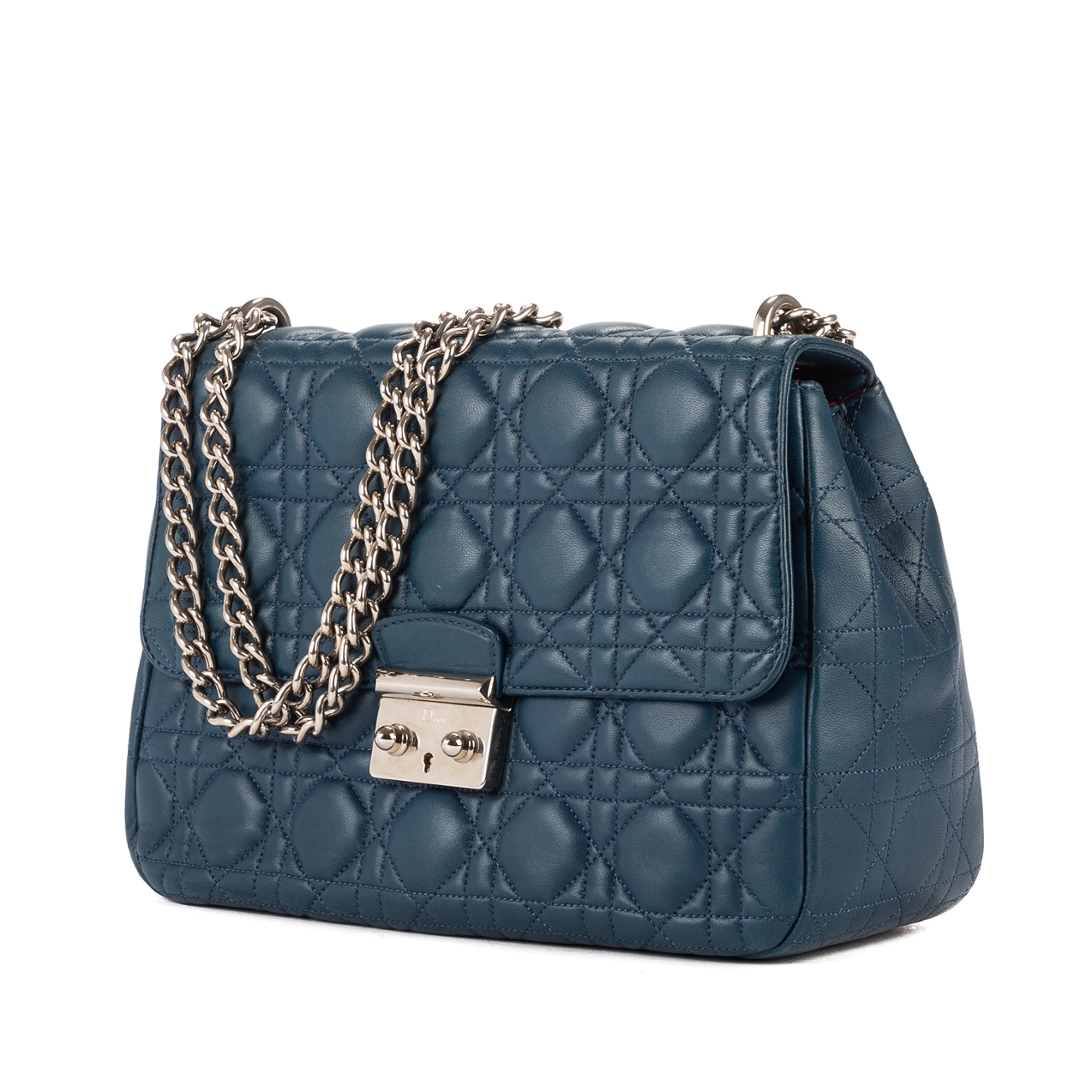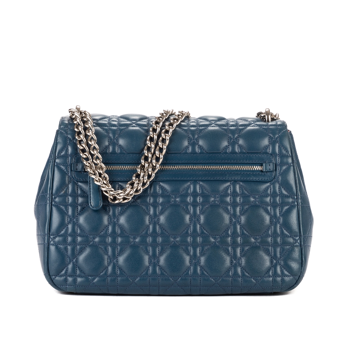 A vintage navy calf leather Dior Miss Dior Promenade bag, a refined and elegant piece that captures the timeless sophistication of the Dior maison. Crafted from smooth calf leather, this beautifully structured bag showcases Dior’s signature Cannage quilting — a motif that symbolises the brand’s enduring dedication to craftsmanship and design excellence. The deep navy tone exudes understated luxury, while the silver-tone hardware and chain strap bring a modern, polished edge to its classic form.