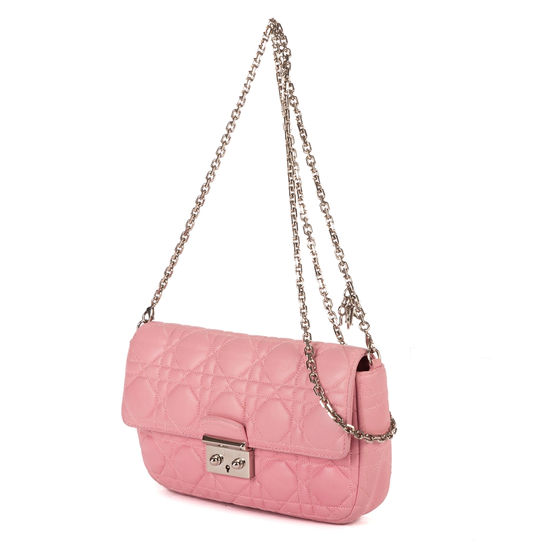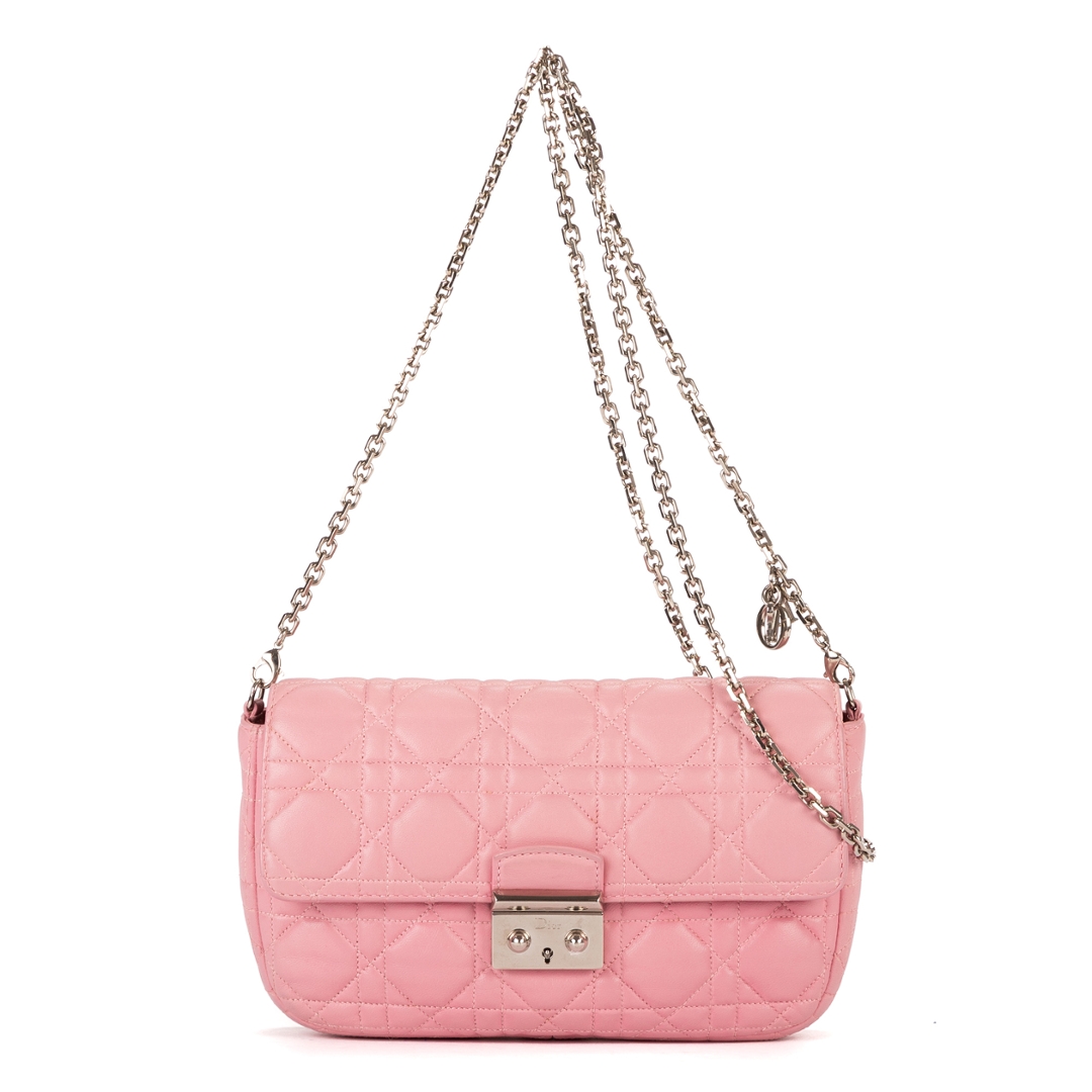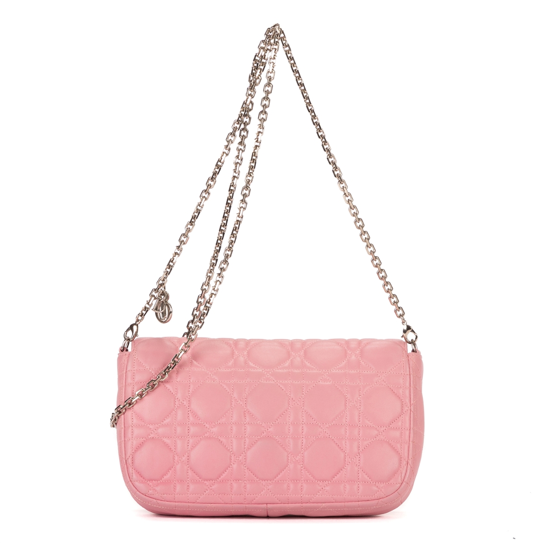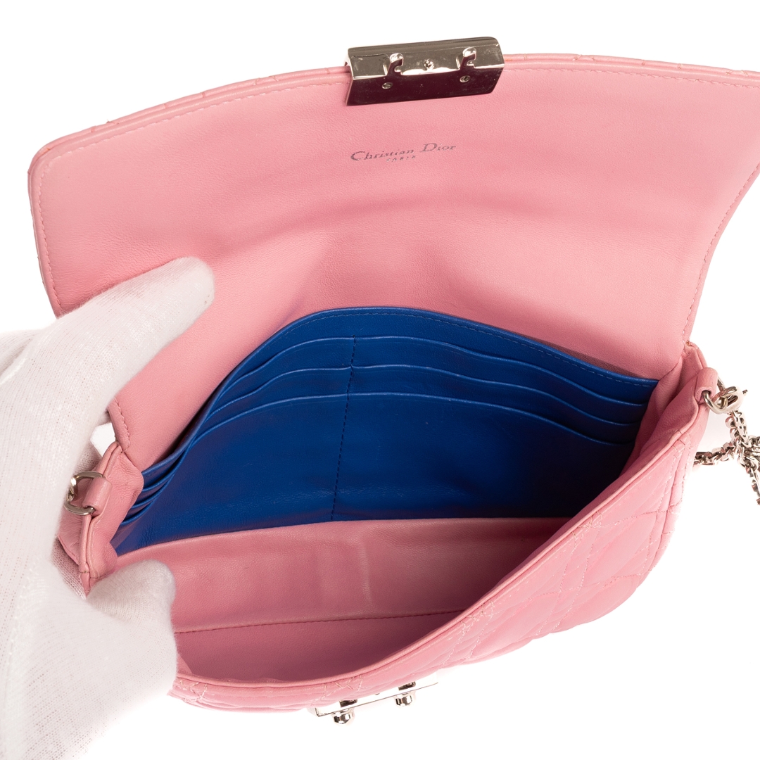 A vintage Dior pink calf leather Miss Dior Wallet On Chain bag with a certificate of authenticity, Approximately 10cm height, 21cm width.