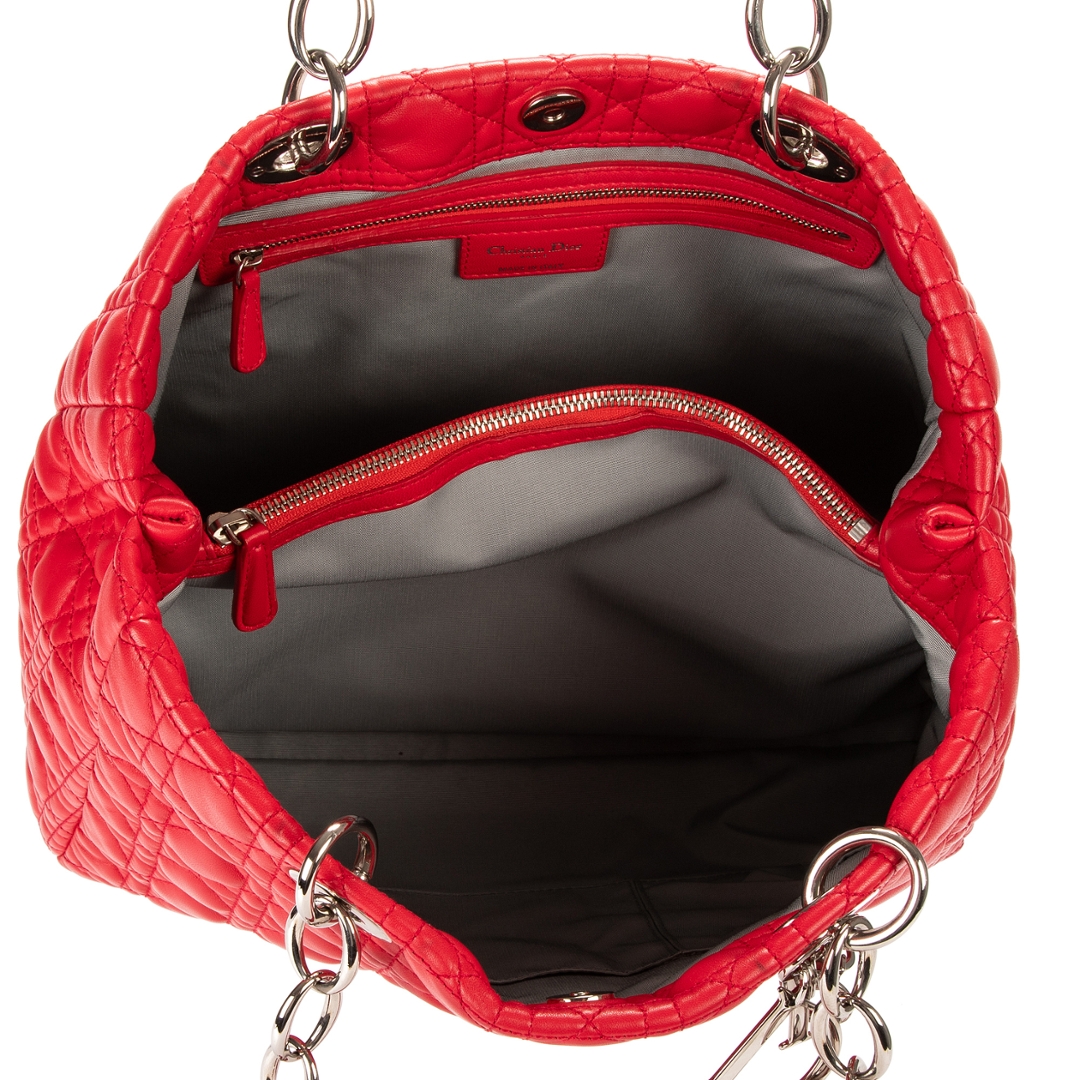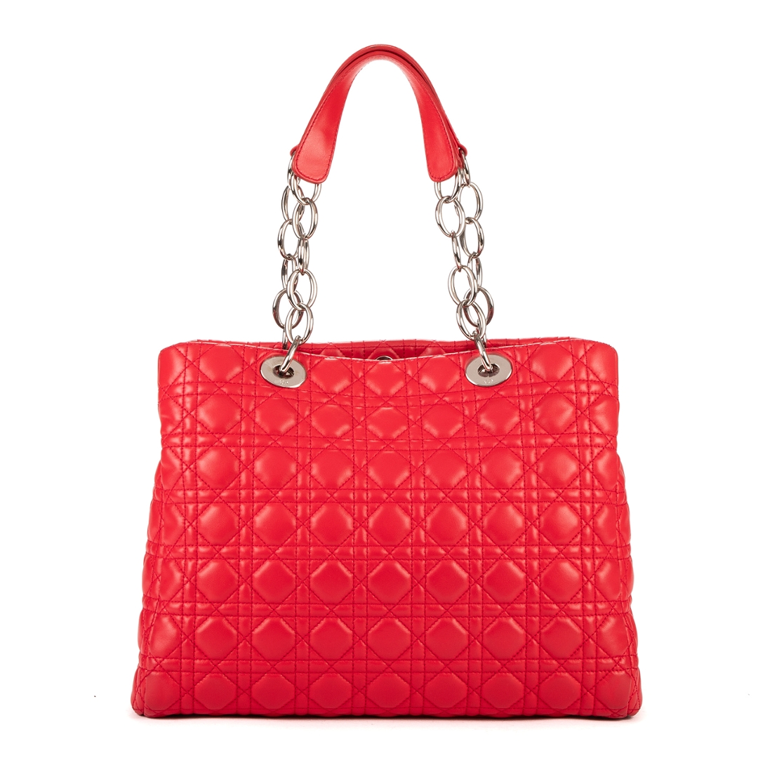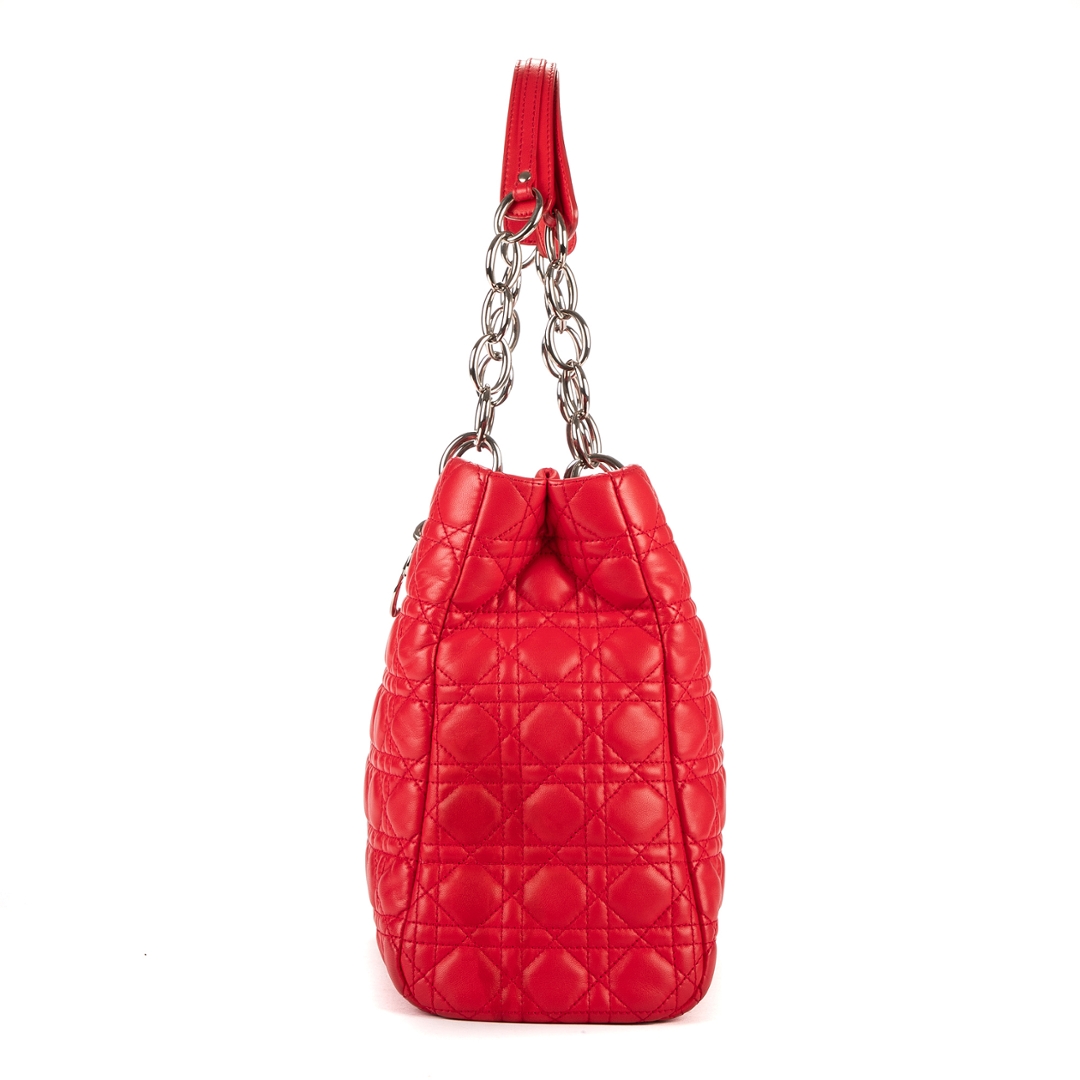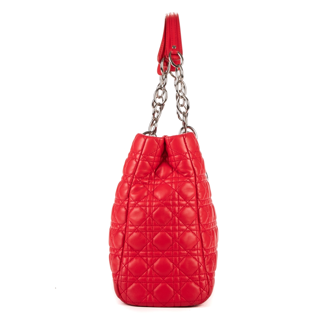 A vintage red calf leather Dior Soft Tote bag, a radiant expression of Dior’s timeless sophistication and feminine design. Crafted from supple calf leather, this elegant tote showcases the maison’s iconic Cannage quilting — a symbol of Dior’s commitment to precision and artistry. The striking red hue adds a bold yet refined touch, while the silver-tone chain handles, interwoven with leather and adorned with signature Dior letter charms, exude effortless luxury.