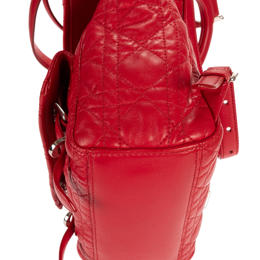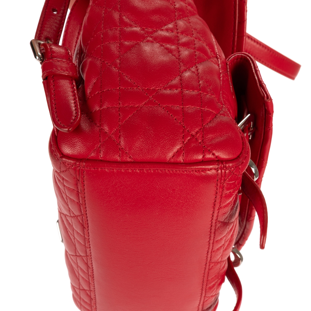 A vintage Dior red calf leather Stardust Backpack with a certificate of authenticity, Approximately 23cm height, 18cm width.
