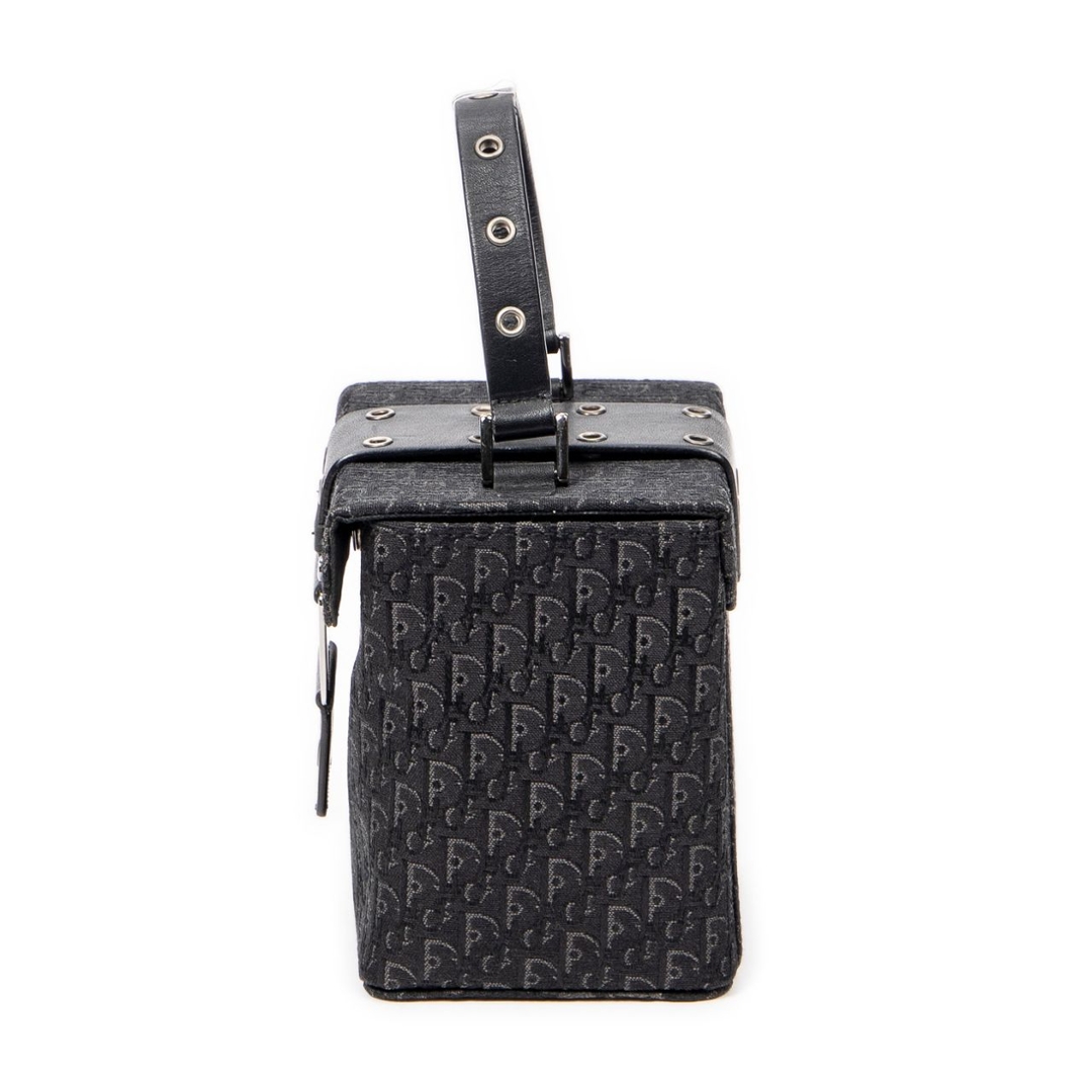 A vintage black canvas Dior Street Chic Mini Vanity Case with a certificate of authenticity, Approximately 12.5cm height, 11cm width.