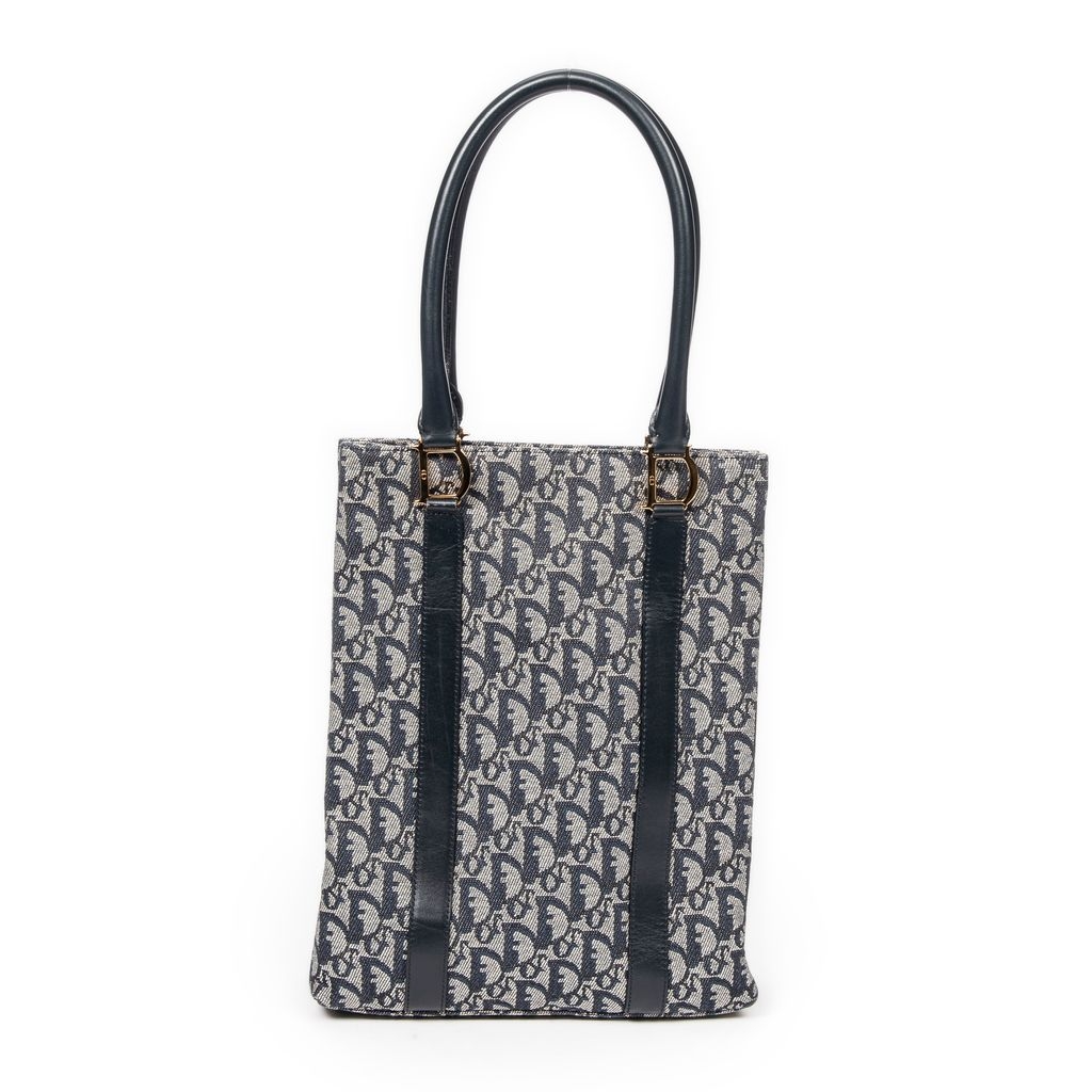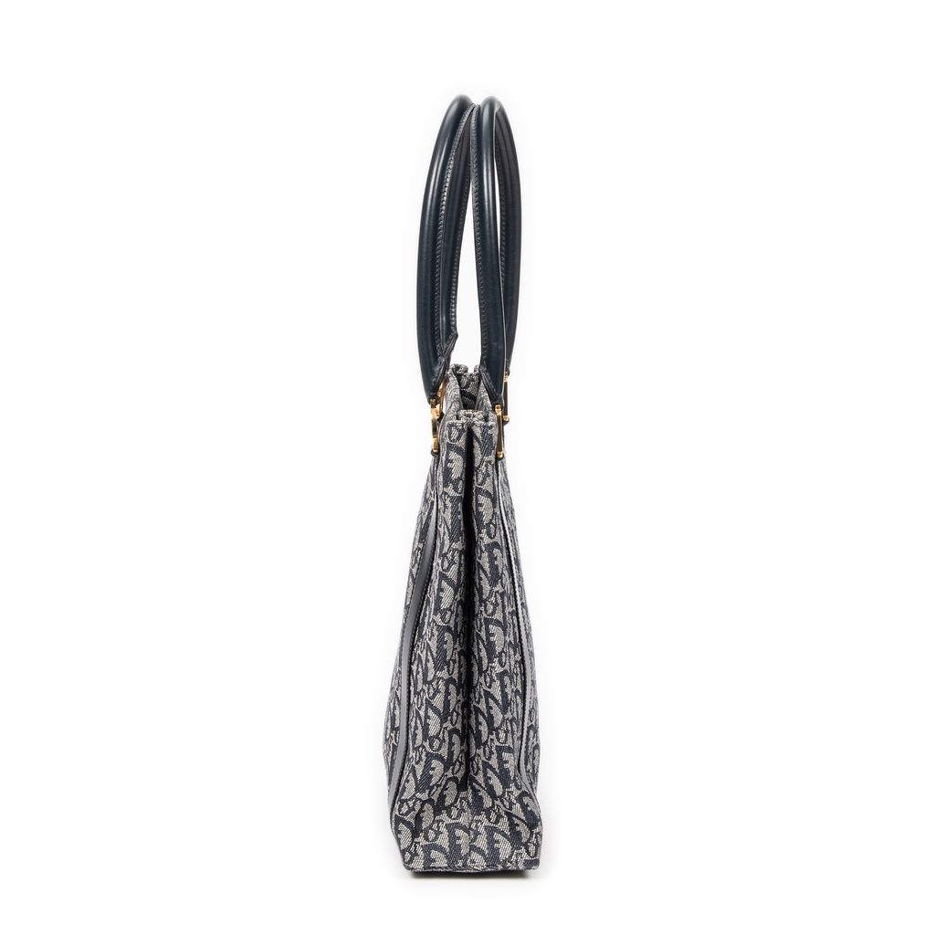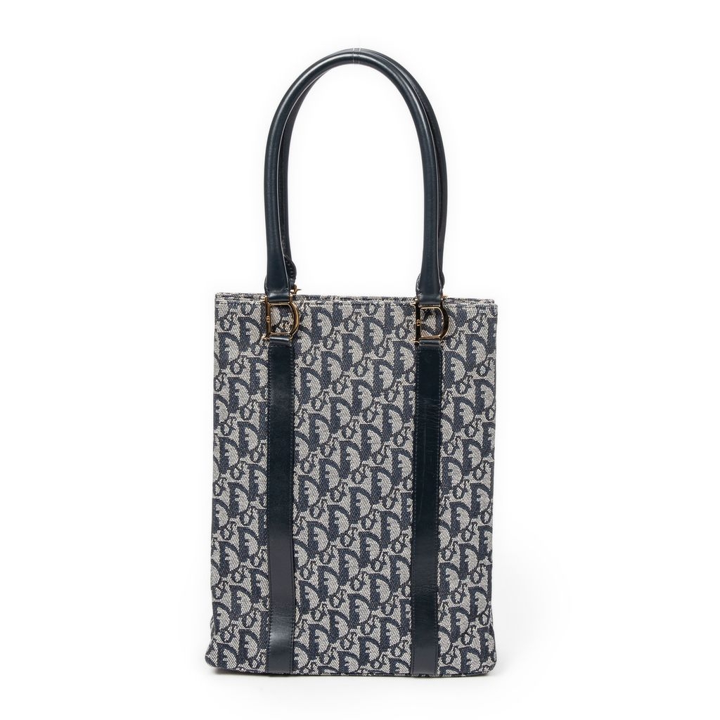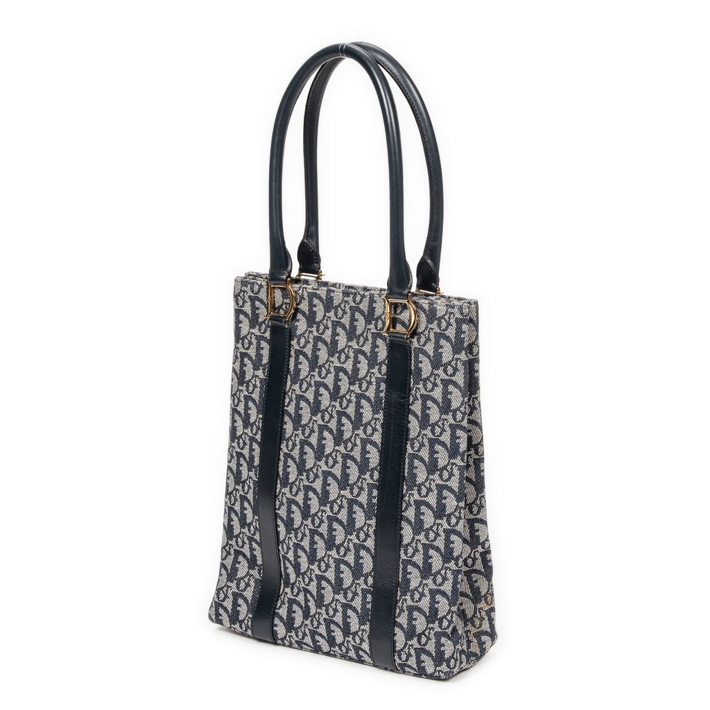 A vintage Dior beige/navy canvas Vertical Tote bag with a certificate of authenticity, Approximately 33cm height, 25cm width.