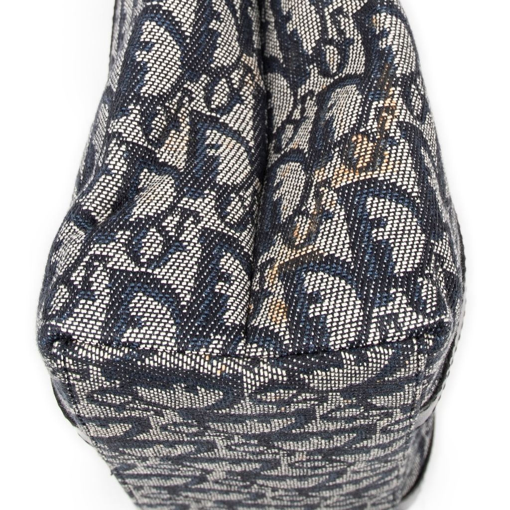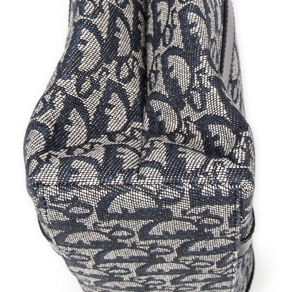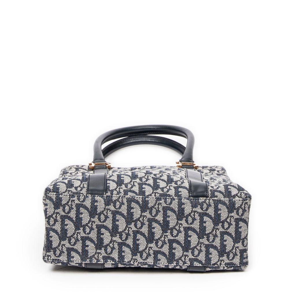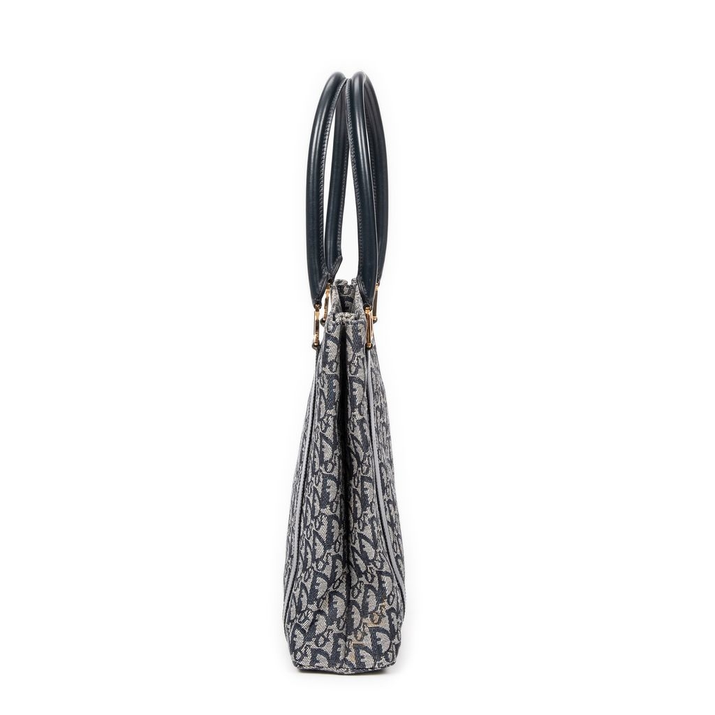 A vintage Dior beige/navy canvas Vertical Tote bag with a certificate of authenticity, Approximately 33cm height, 25cm width.