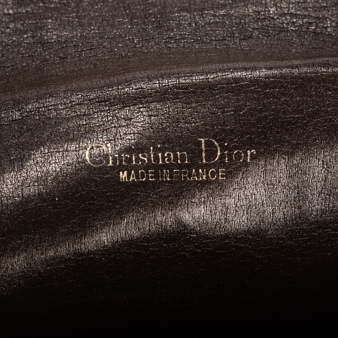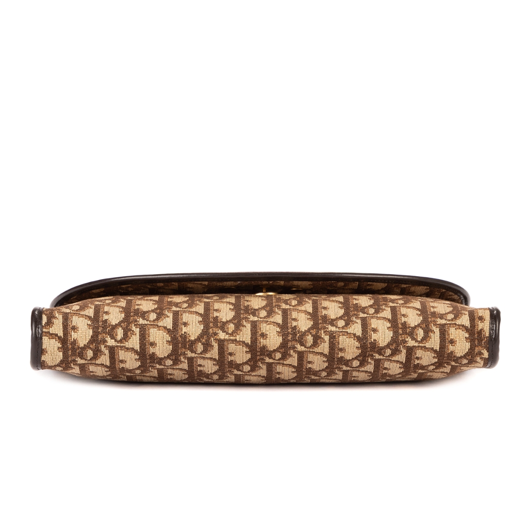 A vintage Dior beige/brown canvas Vintage Pochette bag with a certificate of authenticity. Approximately 15cm height, 20cm width.