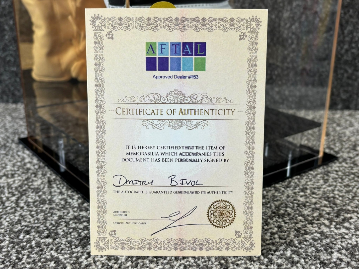 Perfect for boxing fans and collectors, this piece celebrates Bivol’s technical brilliance and dedication to the sport. Whether displayed as a centrepiece or treasured as part of a memorabilia collection, this signed glove is a powerful reminder of the excellence and legacy of Dmitry Bivol.