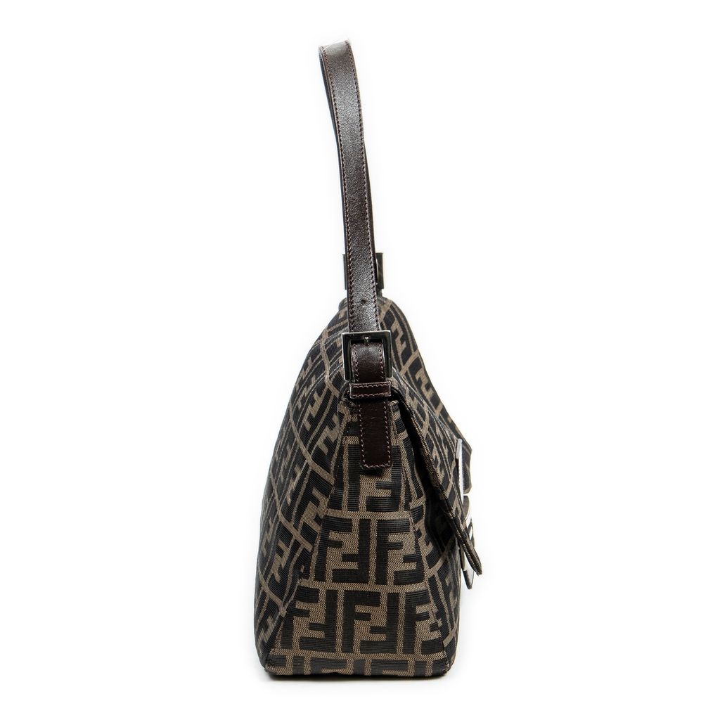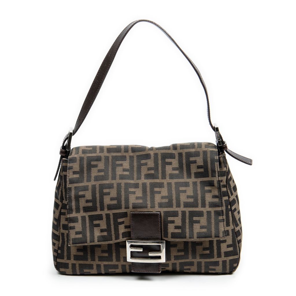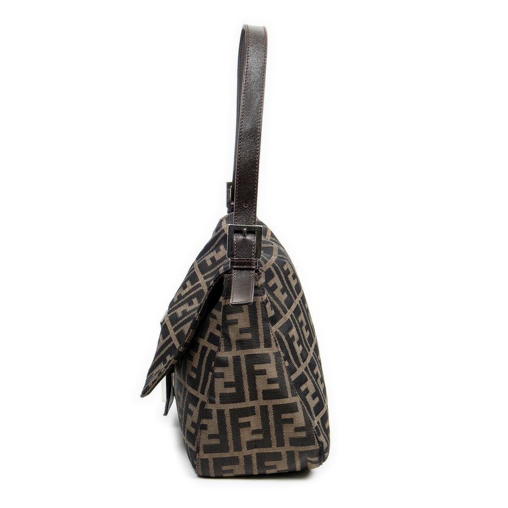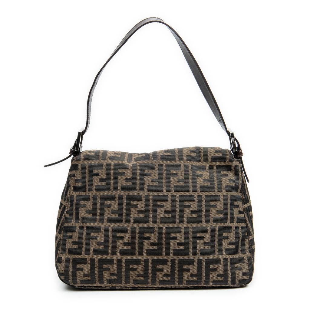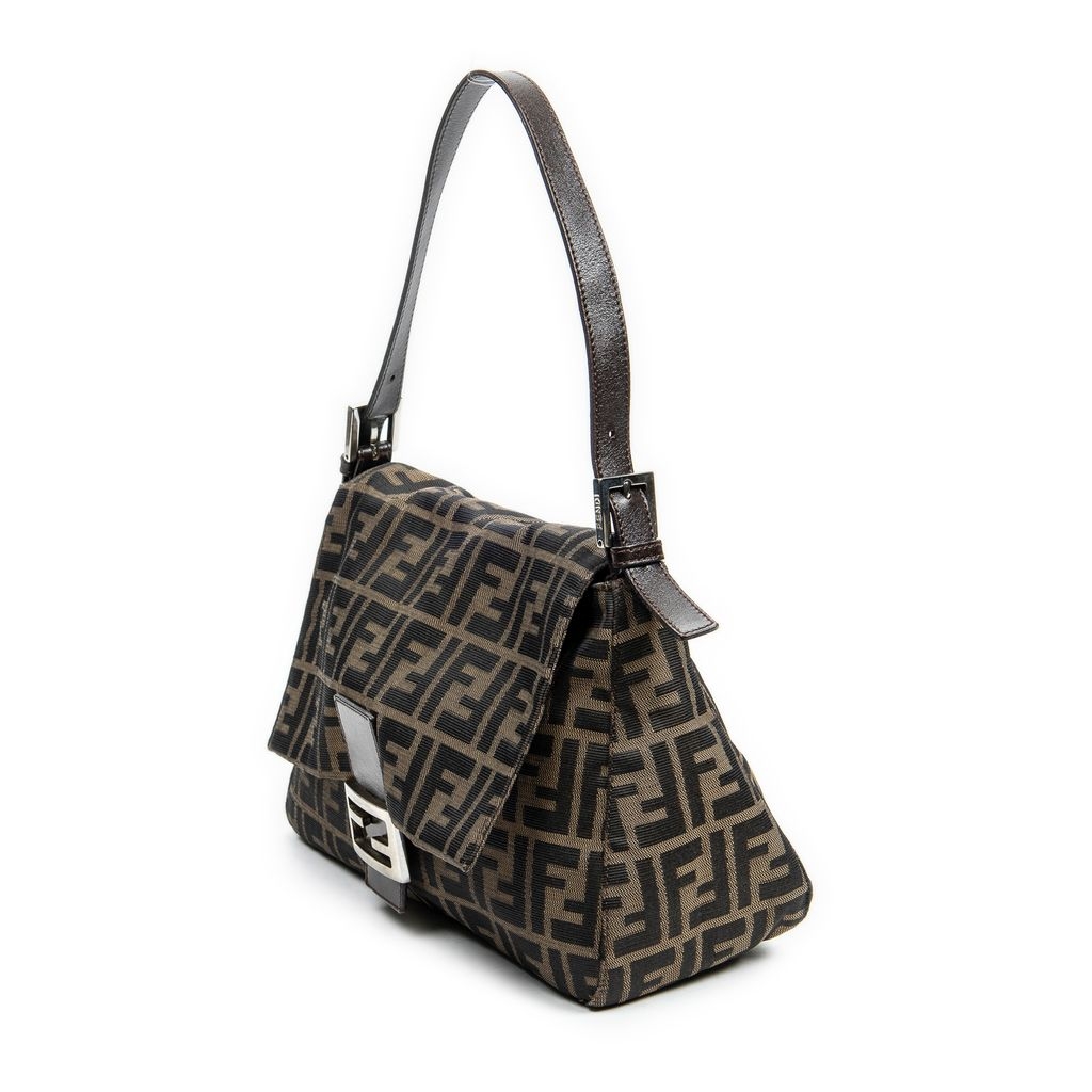 A vintage Fendi brown/black canvas Mama Baguette bag with a certificate of authenticity, Approximately 22cm height, 28cm width.