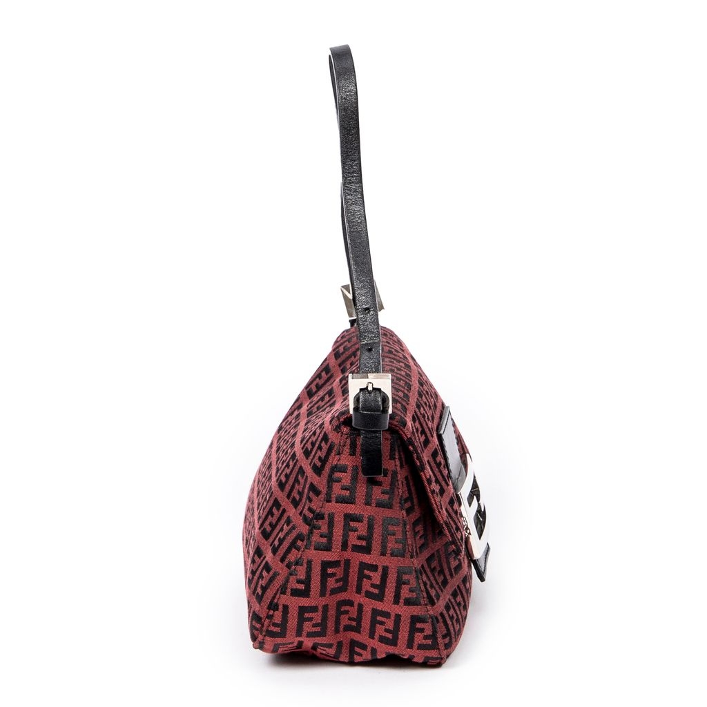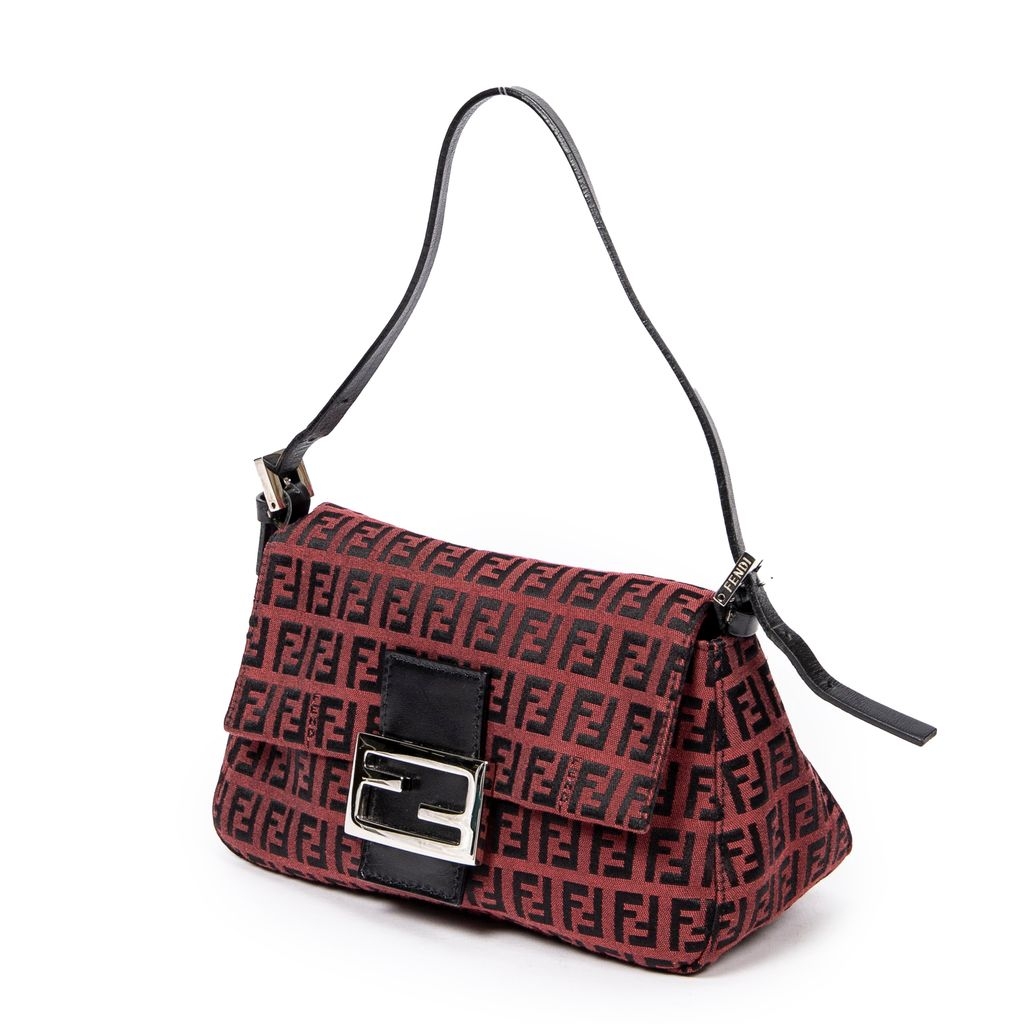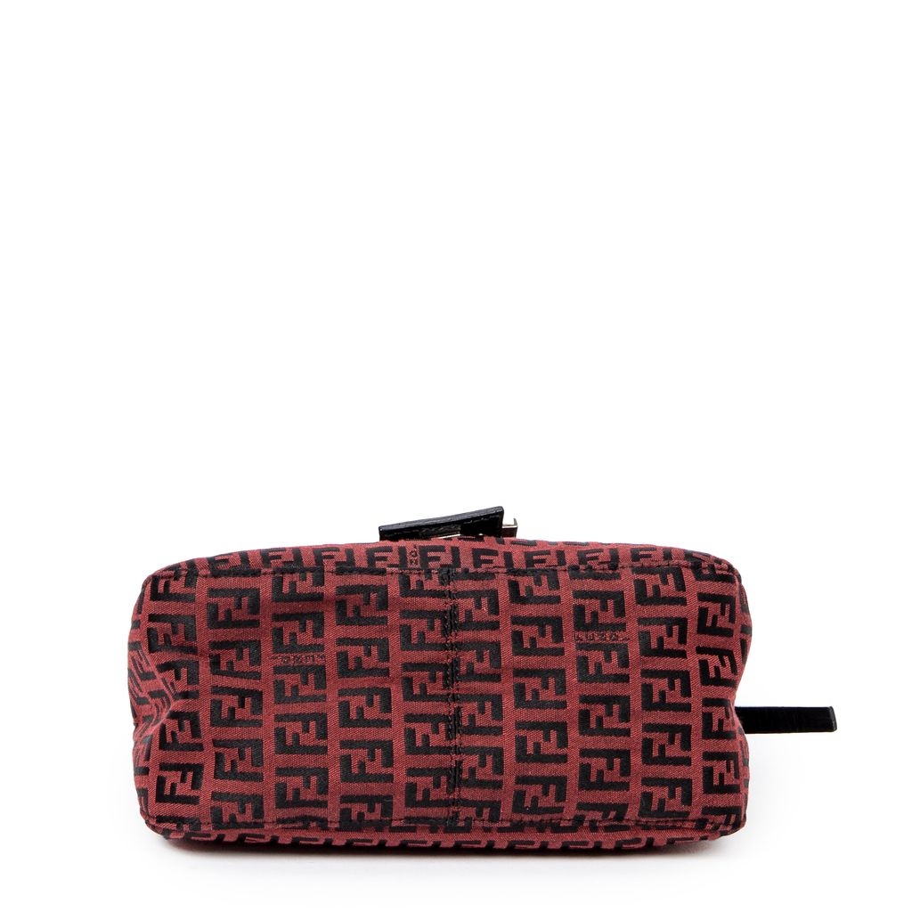 A vintage Fendi red/black canvas Mini Baguette bag with a certificate of authenticity, Approximately 12cm height, 22cm width.