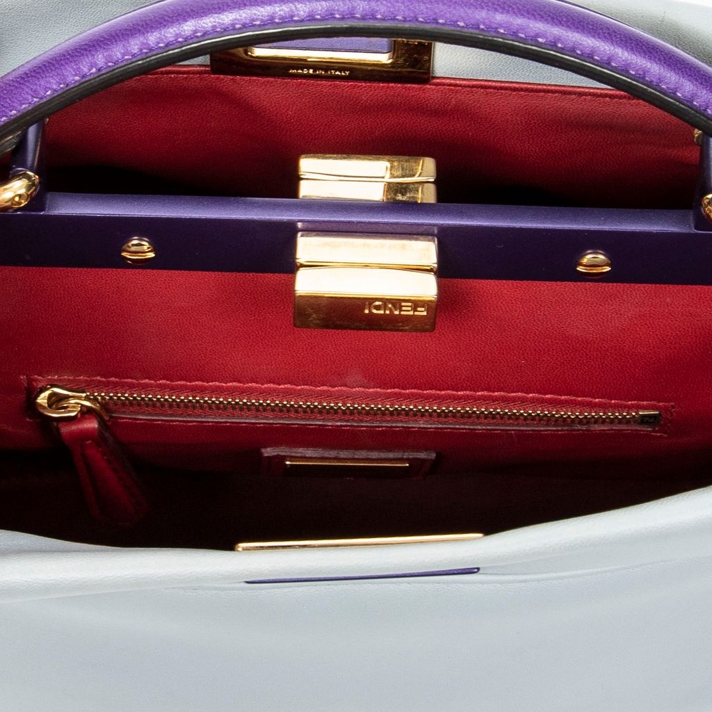 A vintage Fendi light blue/purple calf leather Mini Bicolor Peekaboo bag with a certificate of authenticity, Approximately 18cm height, 23cm width.