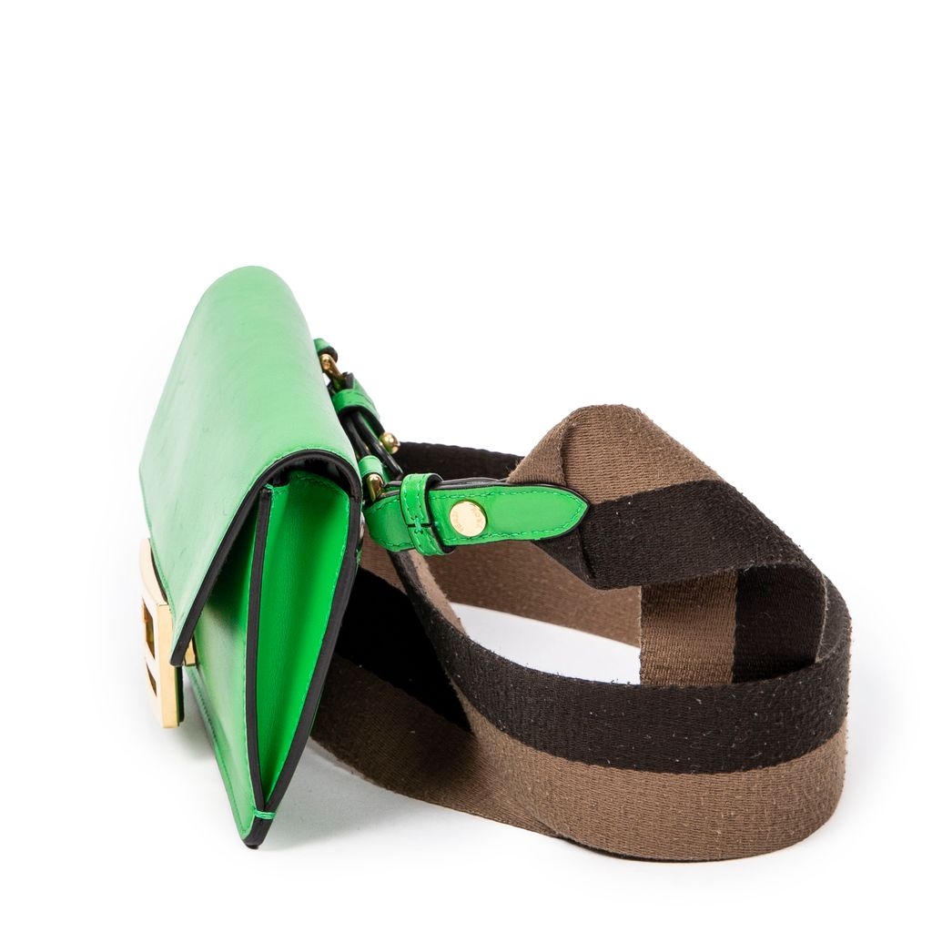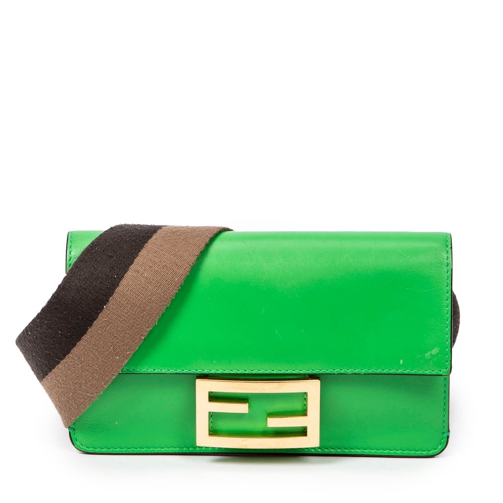 A vintage Fendi green calf leather Mini Flat Baguette bag with a certificate of authenticity, Approximately 10cm height, 18cm width.