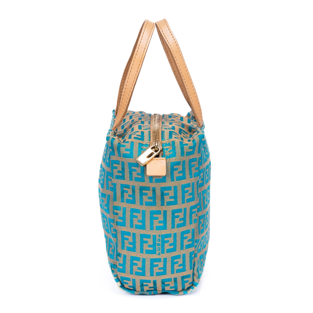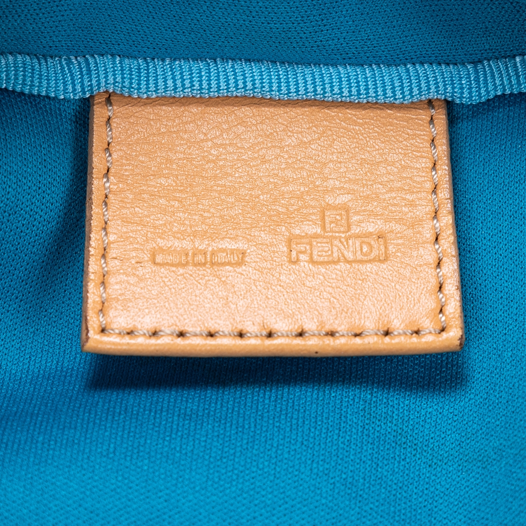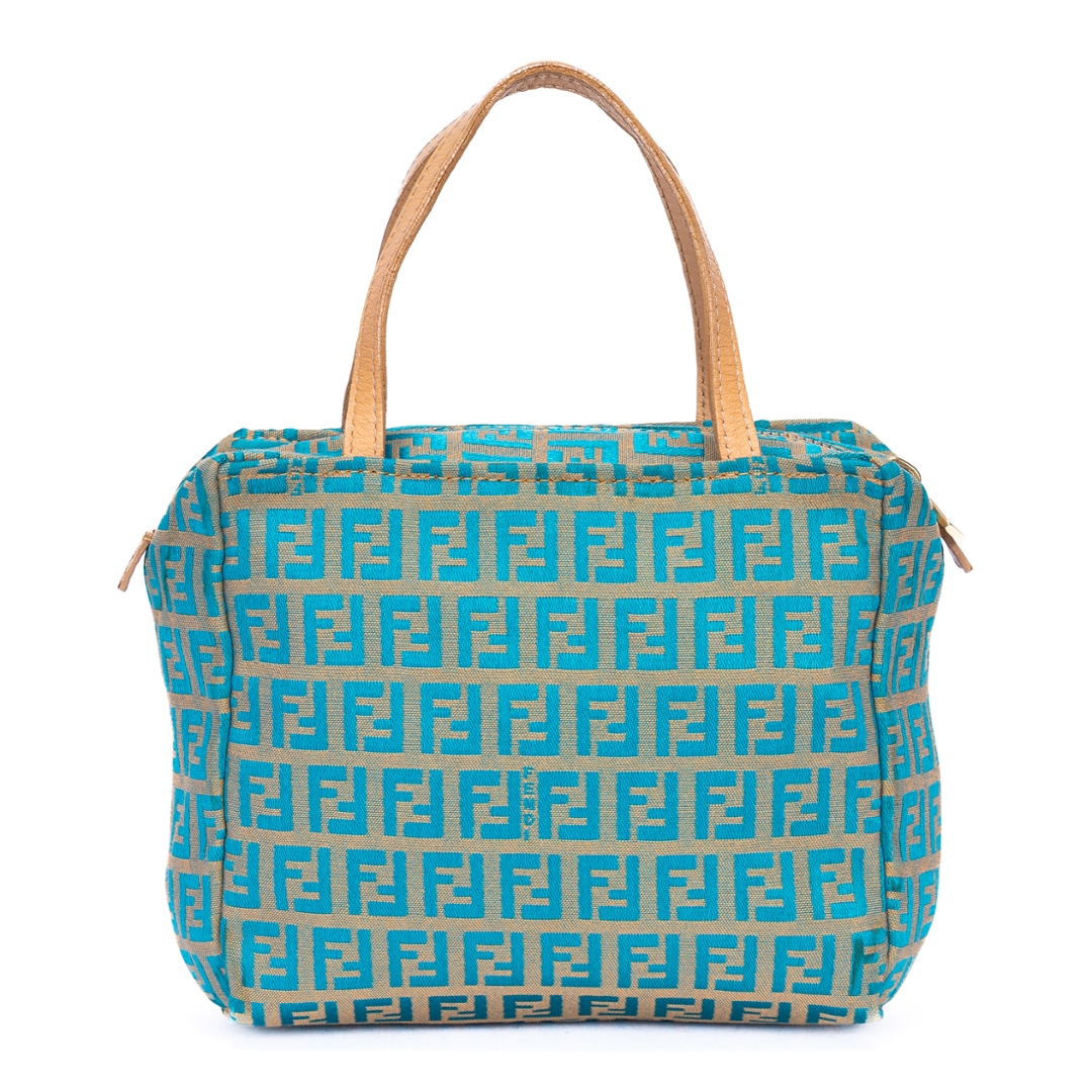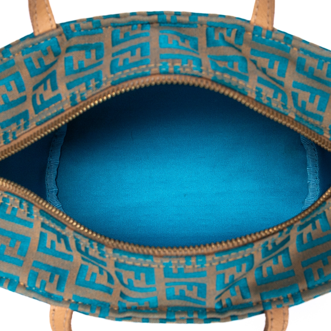 A vintage Fendi beige/blue calf leather Zucchino Mini bag with a certificate of authenticity. Approximately 16cm height, 17cm width.