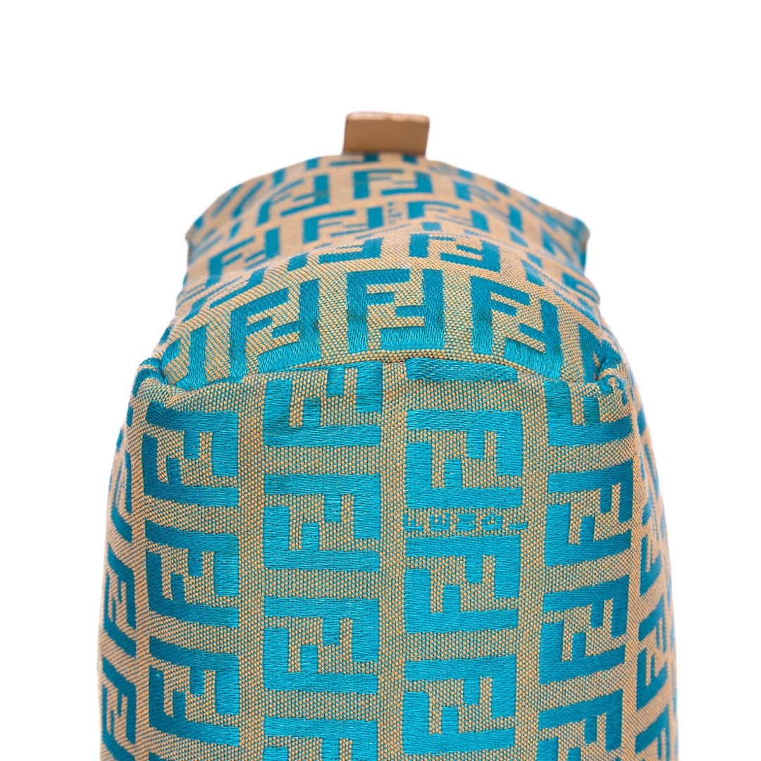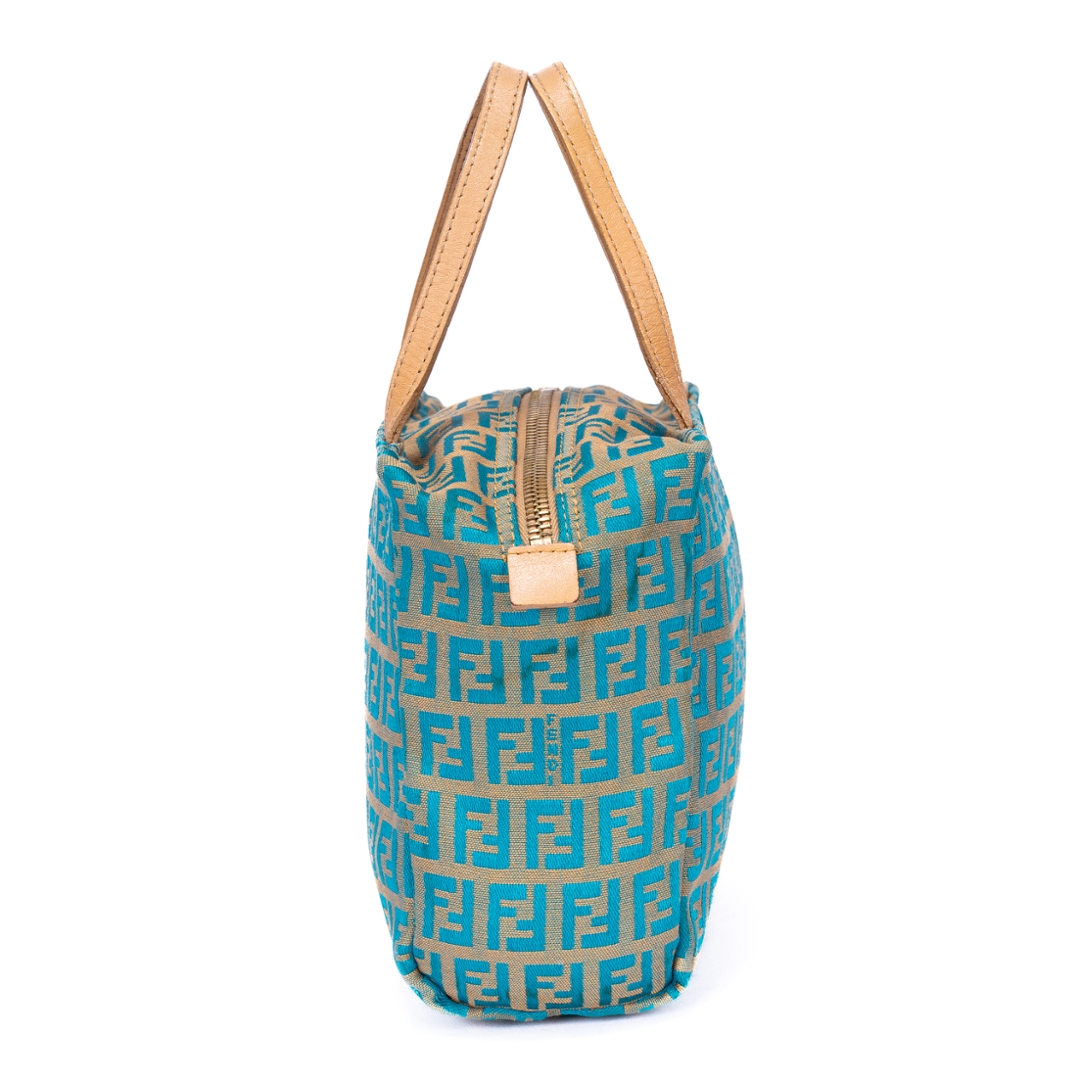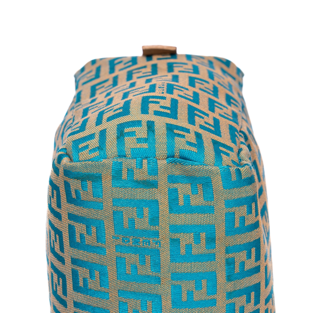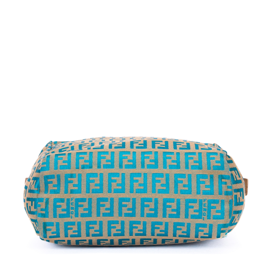A vintage Fendi beige/blue calf leather Zucchino Mini bag with a certificate of authenticity. Approximately 16cm height, 17cm width.