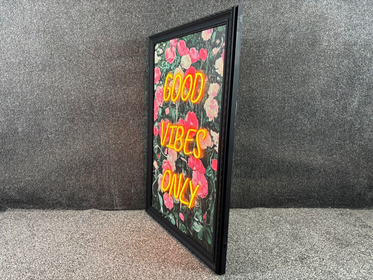 A framed LED Wall Art Picture Good Vibes Only. Approximately 94cm height, 64cm width.