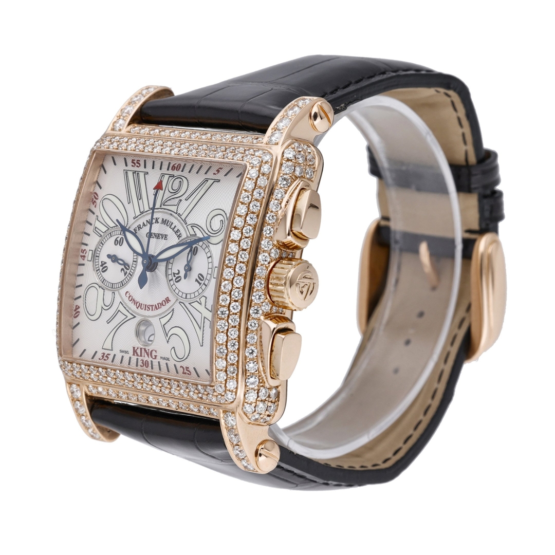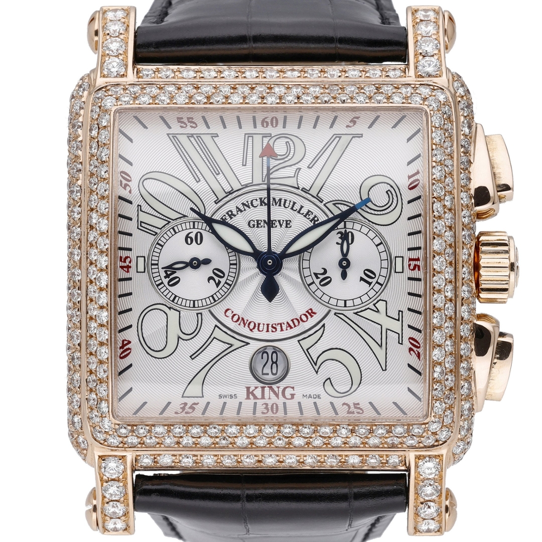 A Franck Muller Conquistador Cortez Watch, Black Leather Strap with an 18ct Rose Gold & Diamond Case & Clasp on a Silver Dial