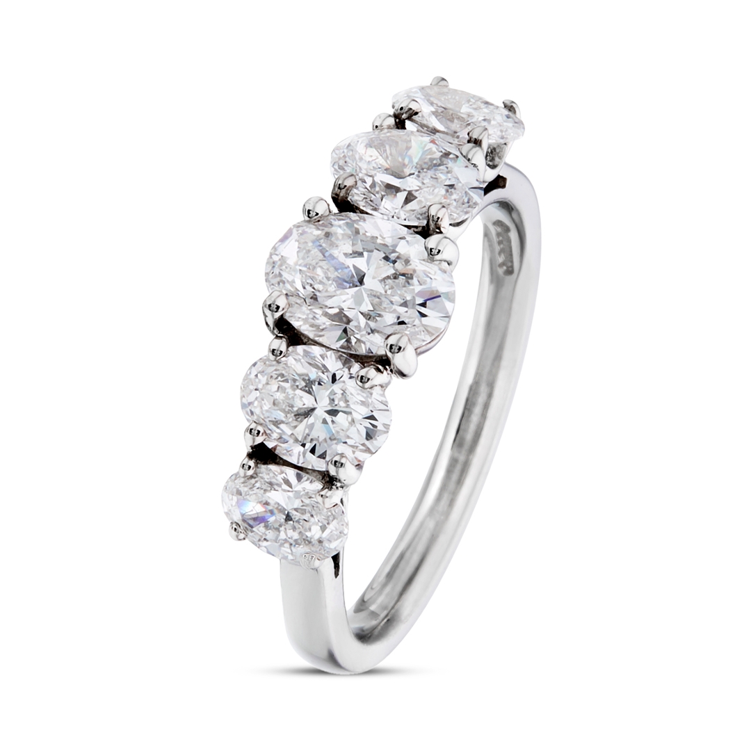 A brand-new, unused GIA-certified natural diamond five-stone cluster ring that brings together exceptional brilliance, refined craftsmanship, and the lasting desirability of genuine diamonds. Set with five oval-cut natural diamonds totalling an impressive 2.44ct in E colour and VS1–VS2 clarity, the ring delivers a continuous flow of bright, near-colourless sparkle across the finger. Each diamond has been selected for its high clarity and elegant oval shape, allowing light to reflect beautifully through the stones with lively fire and confident presence. The uniformity and quality of these natural diamonds highlight the strong appreciation factor associated with mined stones, valued for their authenticity, rarity, and long-established desirability in fine jewellery.