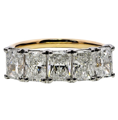 The five-stone design offers seamless flow and generous coverage, combining visual impact with refined balance. Crafted in platinum and 18ct yellow gold, the dual-metal setting enhances both durability and contrast, with the warm yellow gold subtly enriching the diamonds’ brightness while the platinum maintains a crisp, contemporary edge. The result is a timeless aesthetic suited to both modern and classic tastes.