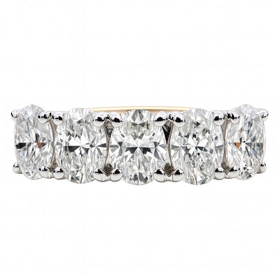 A brand-new, unused GIA-certified natural diamond five-stone eternity ring, with five oval-cut diamonds, set in platinum & 18ct yellow gold.