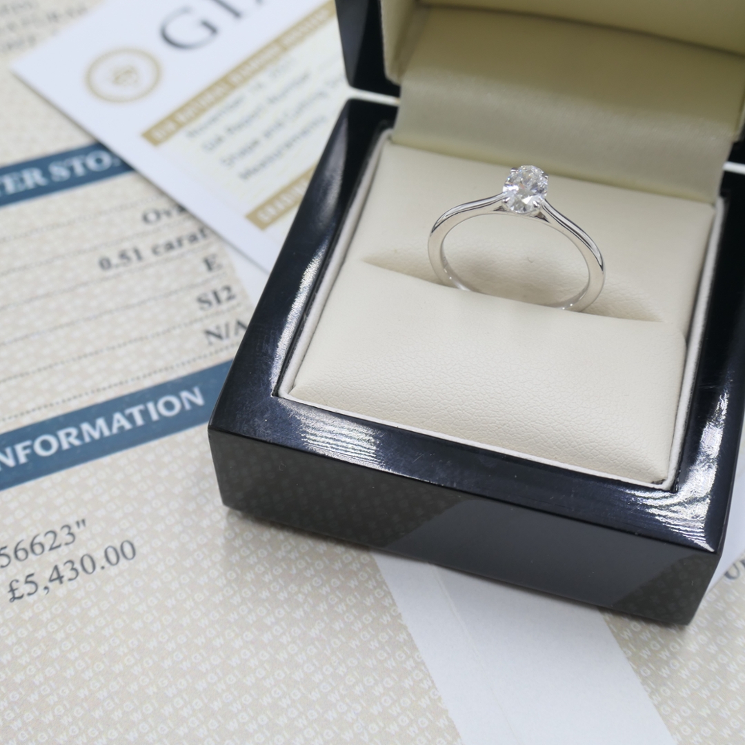 - > GIA Natural Diamond Oval Cut Solitaire Engagement Ring 0.51ct