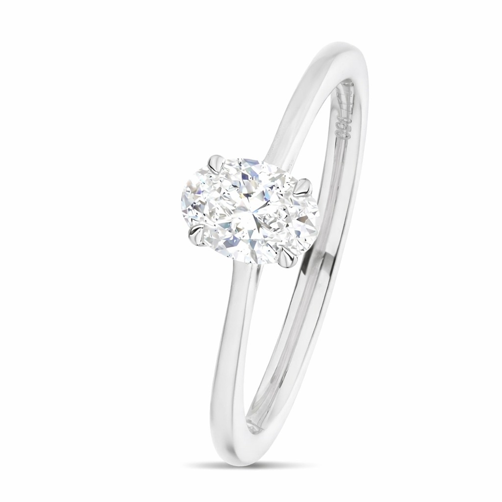 A brand-new, unused GIA-certified natural diamond solitaire engagement ring, set with an oval-cut diamond at the centre, in platinum.