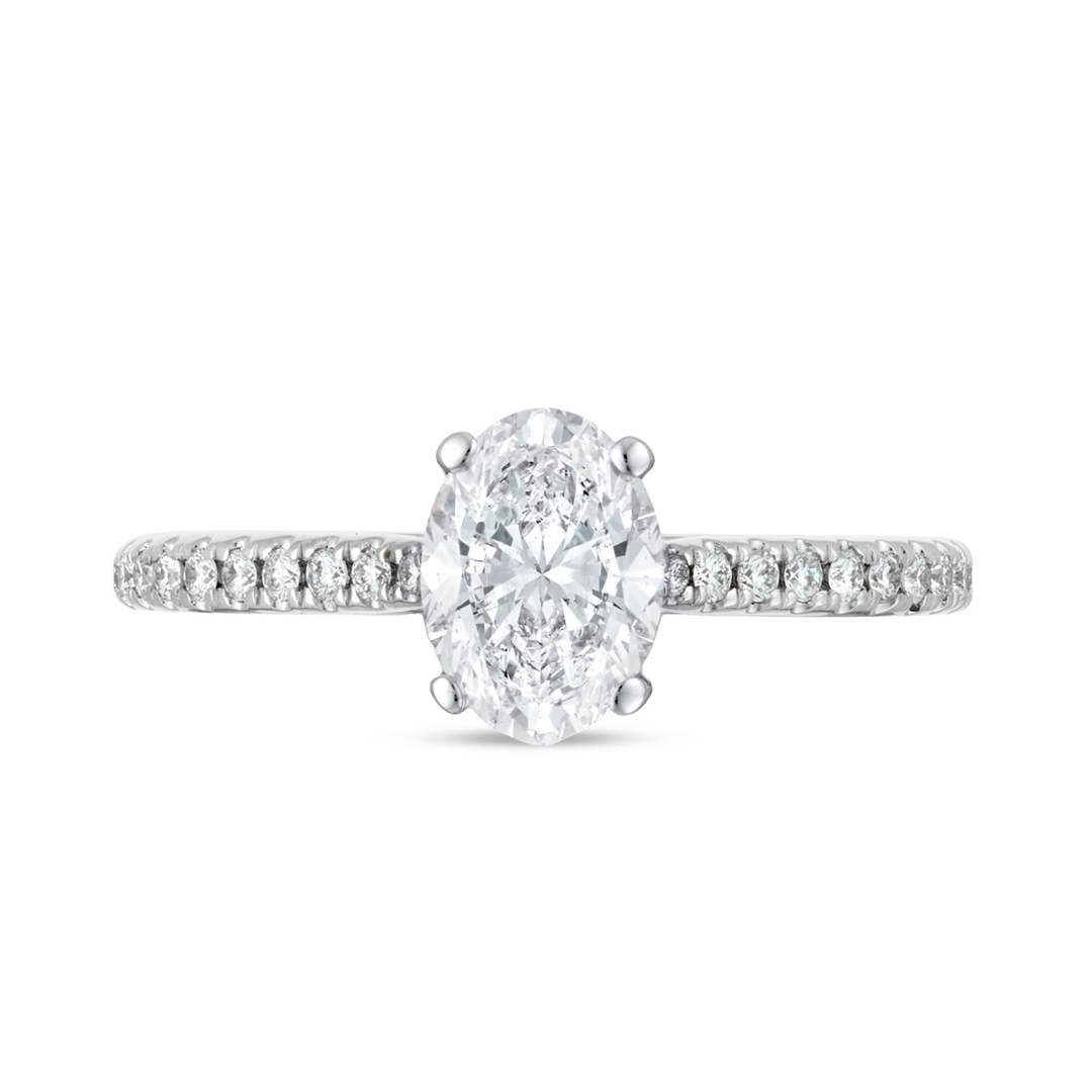 The 18ct white gold setting offers a sleek, contemporary finish, perfectly suited to the elongated shape of the oval-cut diamond, creating a flattering, elegant silhouette on the hand. With a total weight of 2.75g, the ring is lightweight yet well-crafted, designed for both comfort and durability while maintaining a timeless aesthetic.