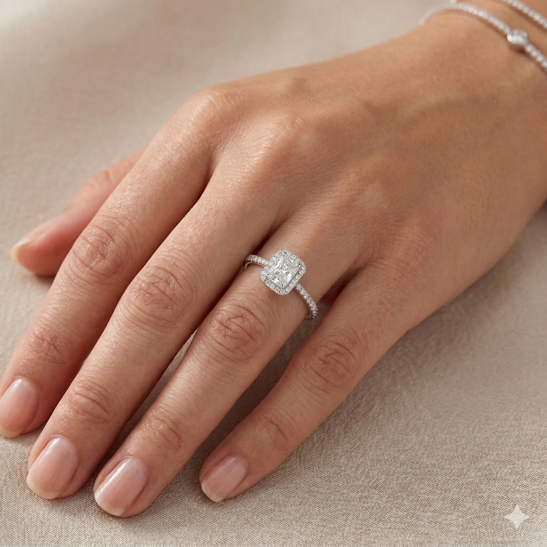 A brand-new, unused GIA-certified natural diamond solitaire engagement ring that exemplifies luxury, brilliance and timeless craftsmanship. At its centre rests a breathtaking 1.50ct radiant-cut natural diamond, graded F in colour and SI1 in clarity, offering outstanding fire and clarity with a beautifully balanced shape. Surrounding this exceptional centre stone is a halo of brilliant-cut diamonds, with additional diamonds cascading along the shoulders for a continuous sparkle. The accent stones total 0.26ct, graded F–G in colour and SI1–SI2 in clarity, creating a seamless display of luminosity. Expertly set in platinum, a metal prized for its durability, purity and elegant lustre, this ring radiates sophistication from every angle. With a total weight of 4.69 grams and a professional valuation of £25,898, it is a stunning testament to fine jewellery artistry and enduring beauty.