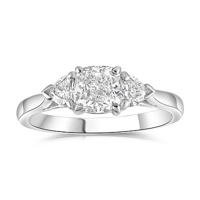 A brand-new, unused GIA-certified natural diamond three-stone cluster ring that blends refined brilliance, balanced structure, and the lasting qualities of genuine diamonds. At the centre sits a 0.82ct cushion-cut natural diamond graded E in colour and SI1 in clarity, offering impressive brightness, a near-colourless appearance, and a clean, lively sparkle. Its proportions allow light to reflect beautifully, creating a confident and elegant focal point. Framing the centre stone are two natural heart-cut diamonds with a combined weight of 0.46ct, adding a distinctive touch with their romantic shape and crisp brilliance. These natural diamonds offer a strong appreciation factor, valued for their authenticity, rarity, and proven desirability, which makes natural stones consistently sought after across fine jewellery markets.