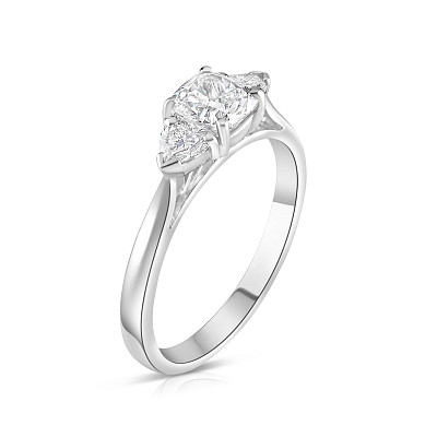 A brand-new, unused GIA-certified natural diamond three-stone cluster ring, set with one cushion-cut diamond to the centre & two heart-cut diamonds to the sides, set in platinum.