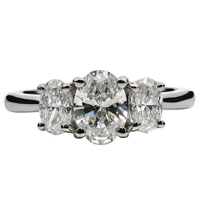 A brand-new, unused GIA-certified natural diamond three-stone eternity ring, with three oval-cut diamonds, set in platinum.